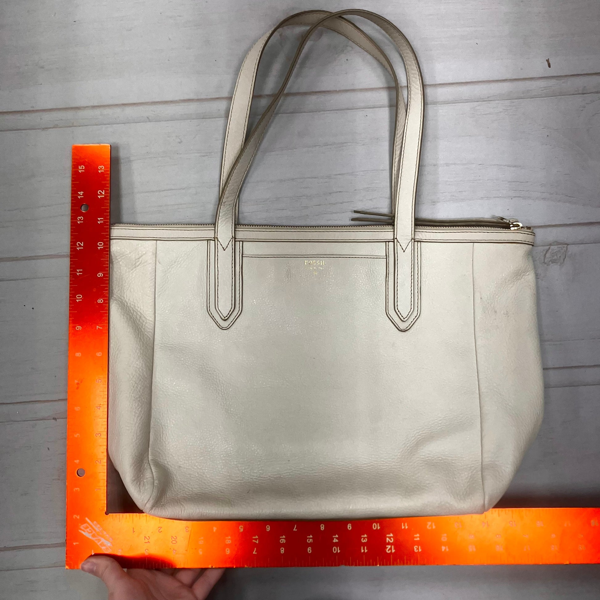 Handbag Leather By Fossil, Size: Medium