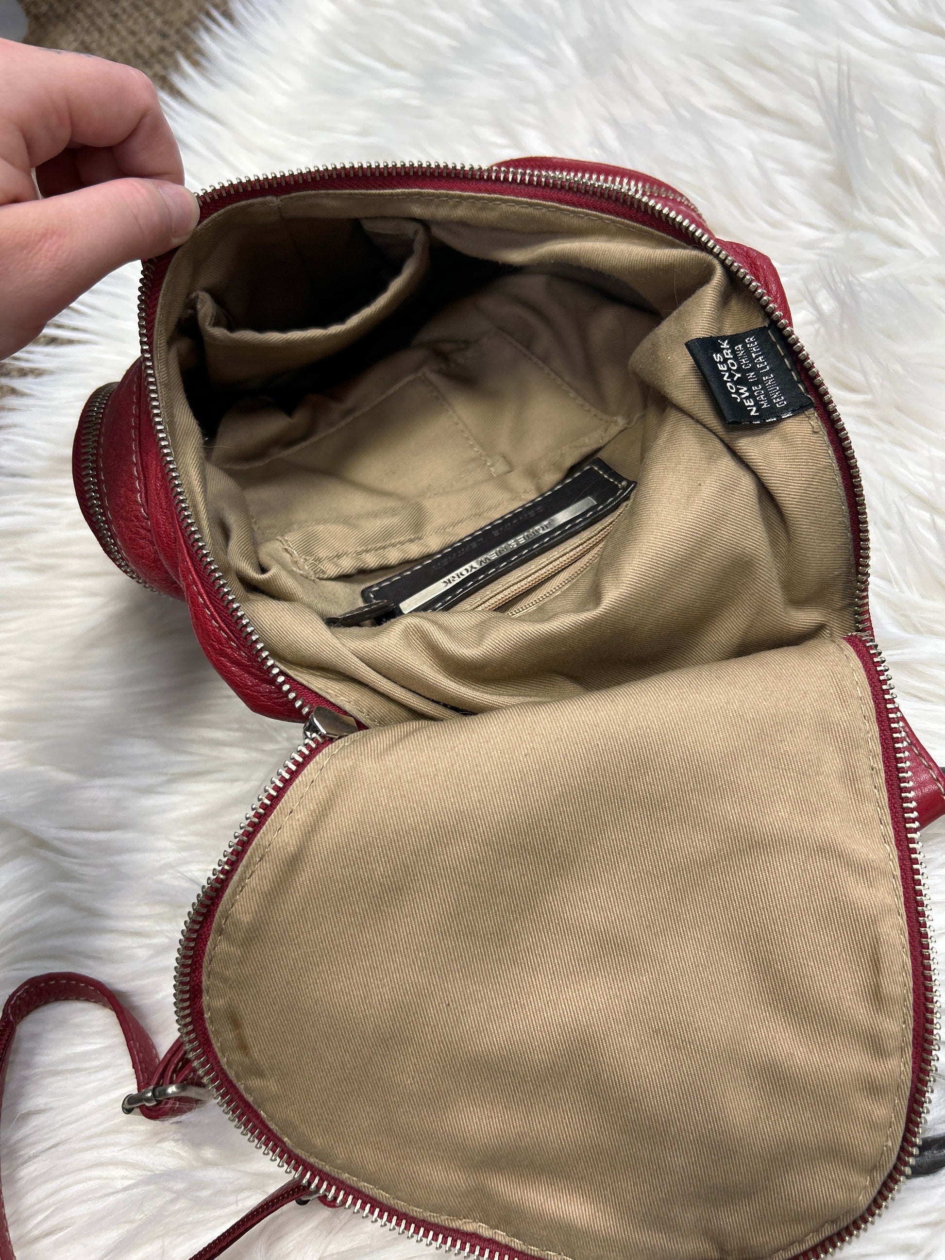 Handbag Leather By Jones New York In Red, Size:Medium