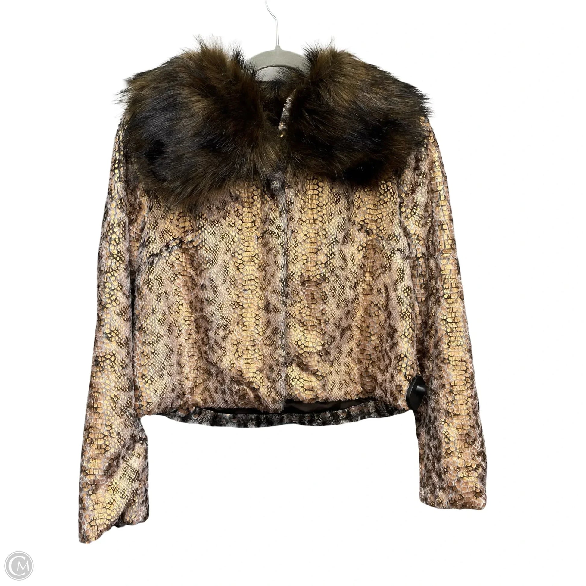Jacket Faux Fur & Sherpa By Anthropologie In Brown & Gold, Size: M
