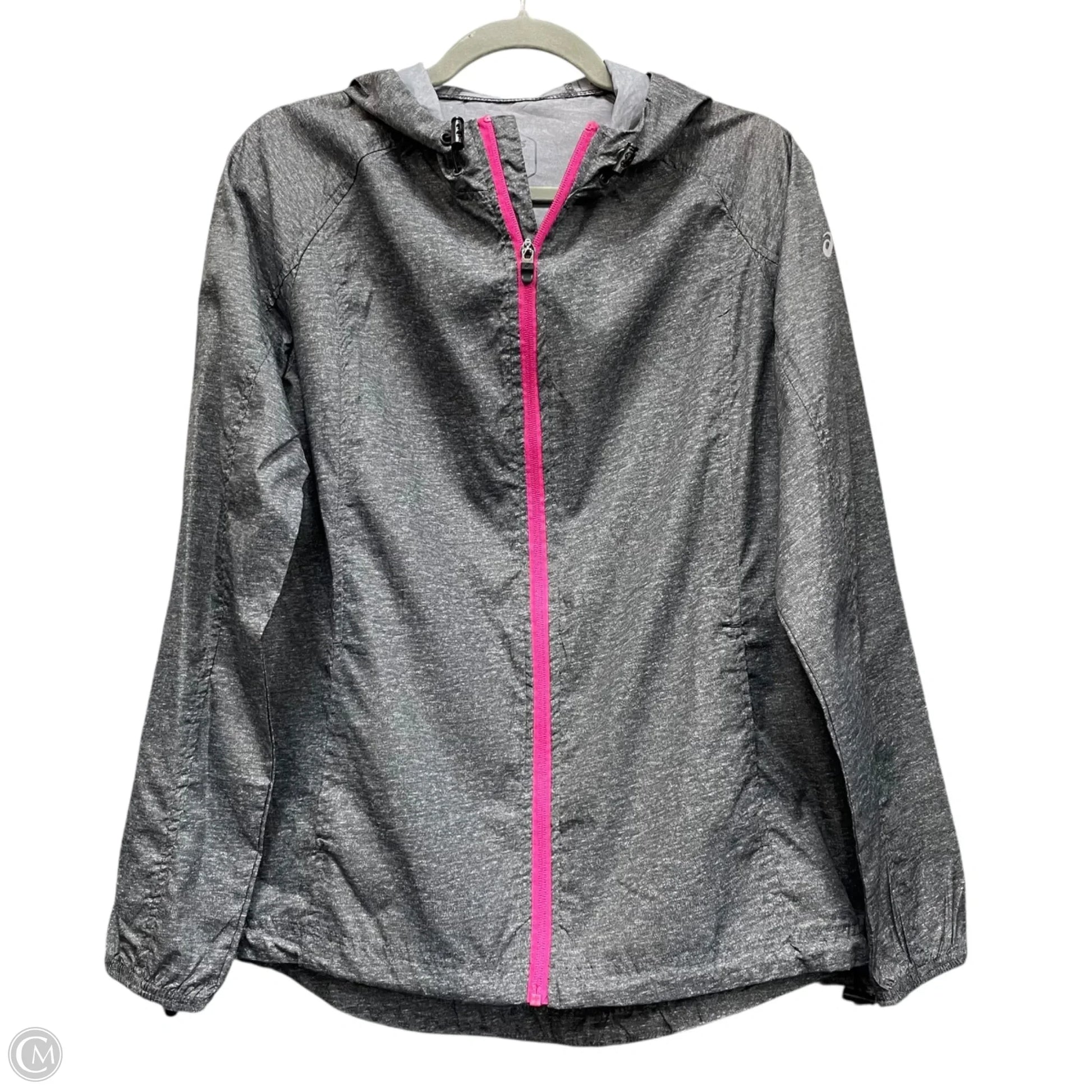 Jacket Windbreaker By Asics In Grey, Size: L