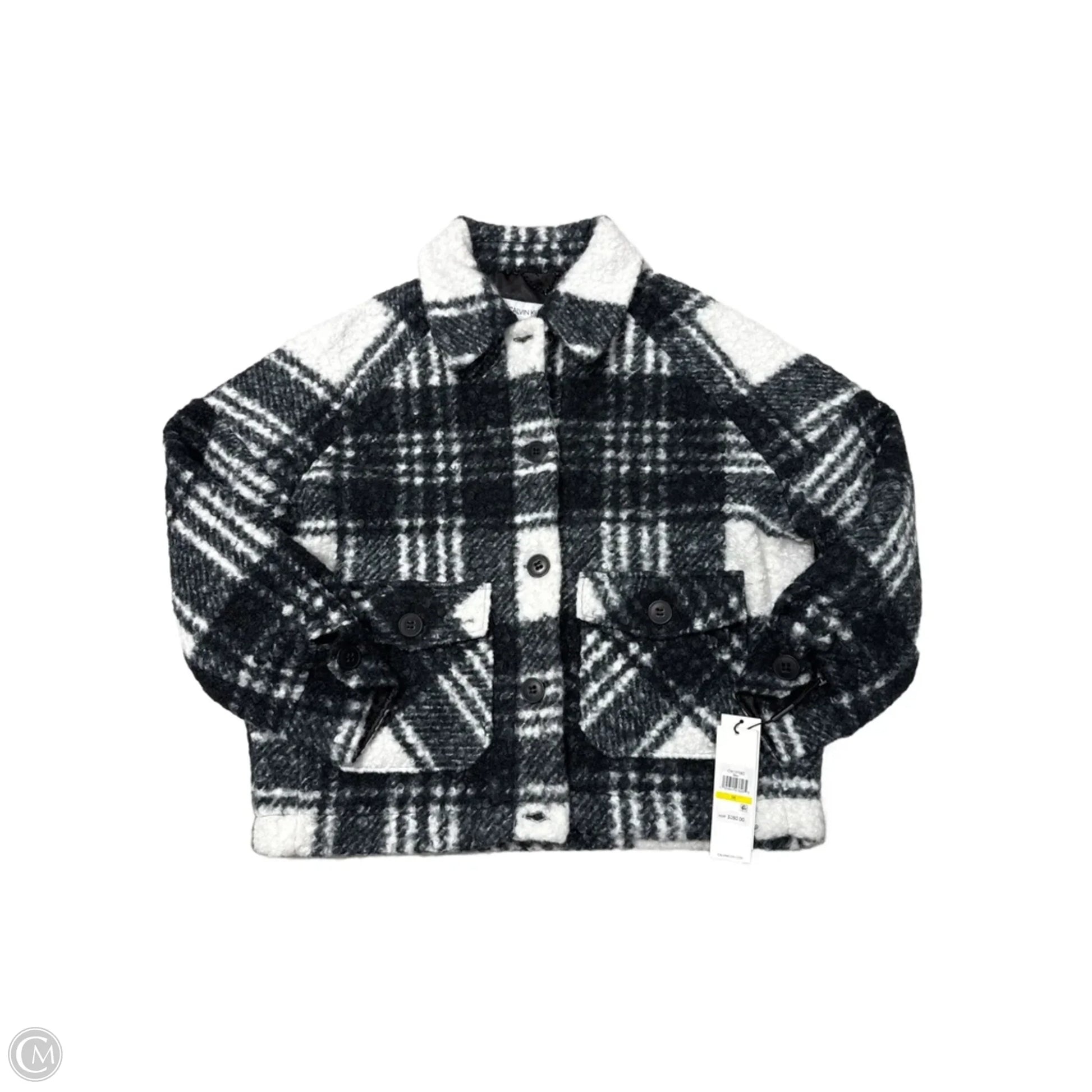 Unleash your inner trendsetter with the New Calvin Klein Coat in Black & White, Size M. Command attention with the bold color contrast and impeccable fit. Embrace sophistication and style with this wardrobe essential. Elevate your look effortlessly.
