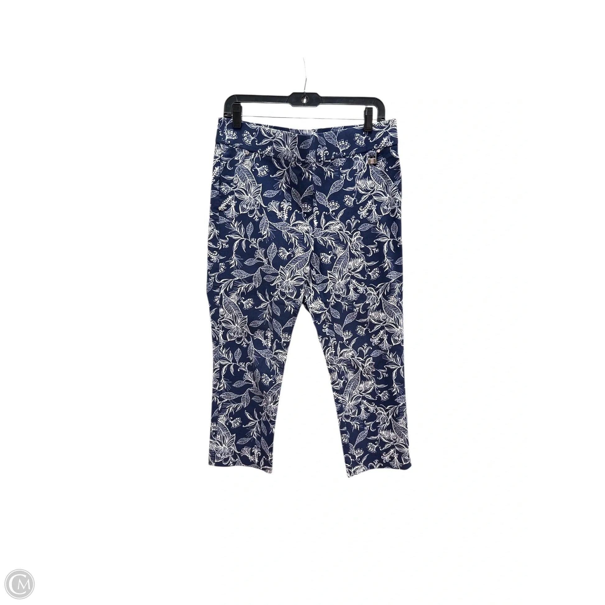 Pants Cropped By Rafaella In Blue & White, Size: 14