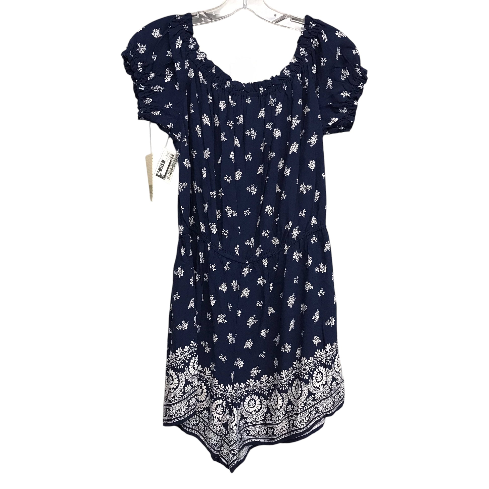 Indulge in the chic charm of this Be-Bop romper in XL, featuring a sophisticated blue and white design.