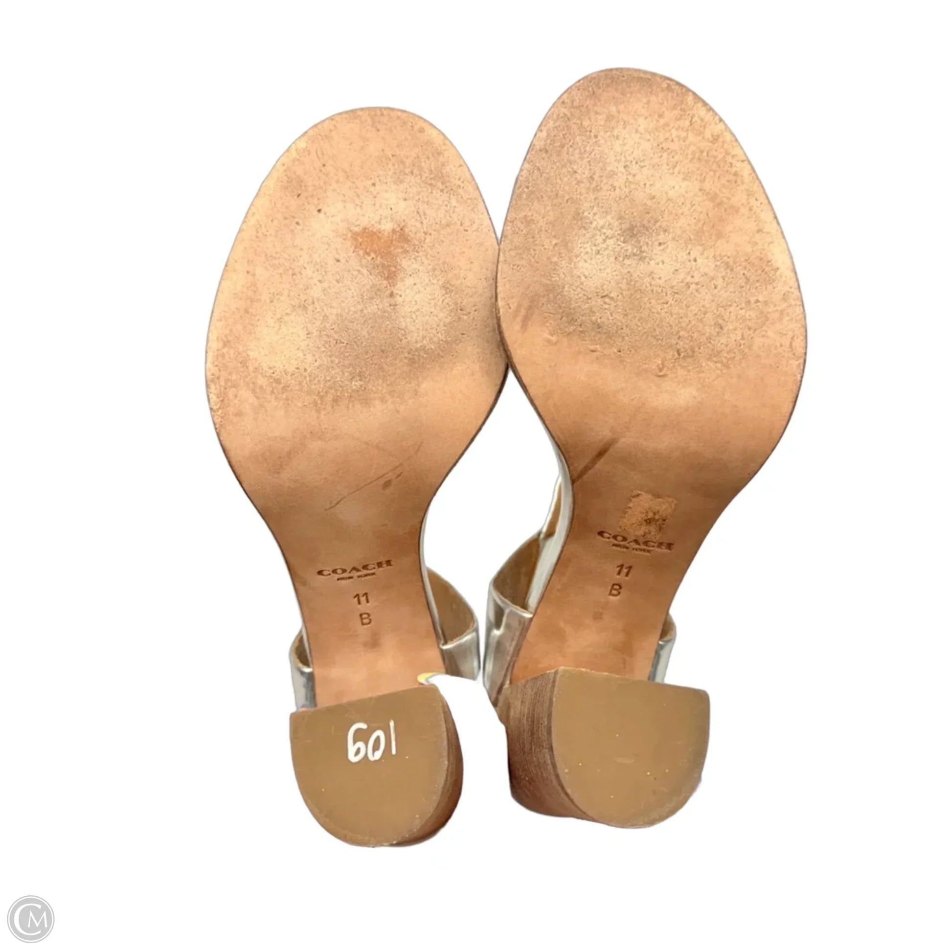 Sandals Designer By Coach In Silver, Size: 11