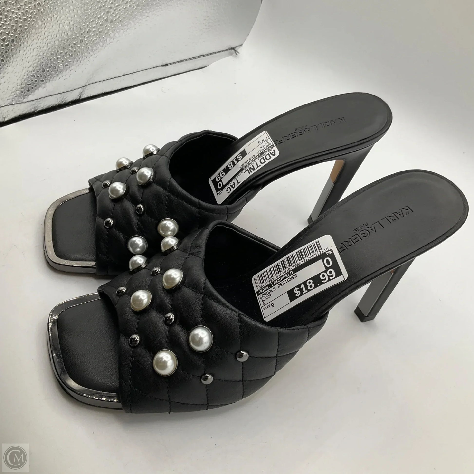 Sandals Designer By Karl Lagerfeld In Black, Size: 9