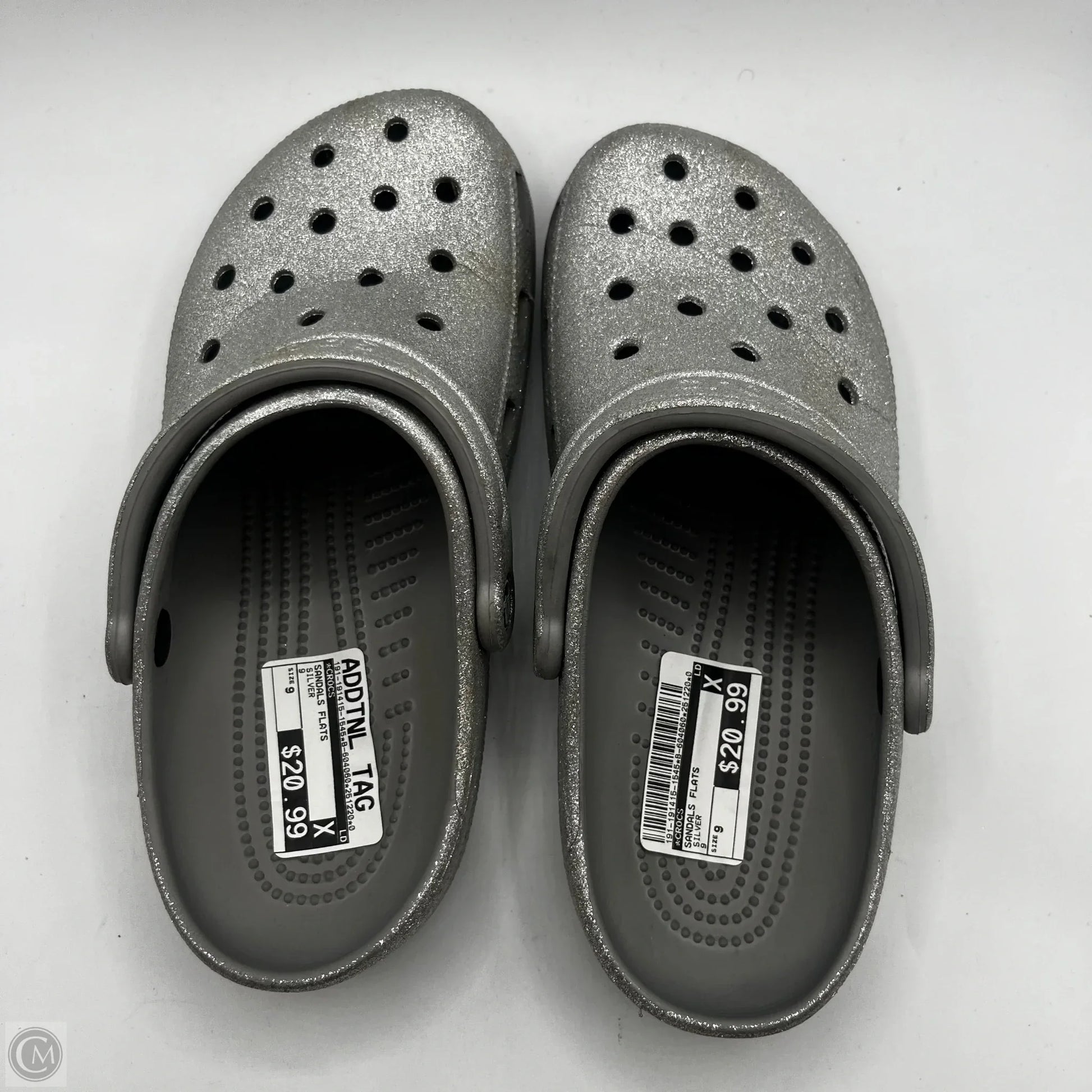 Sandals Flats By Crocs In Silver, Size: 9