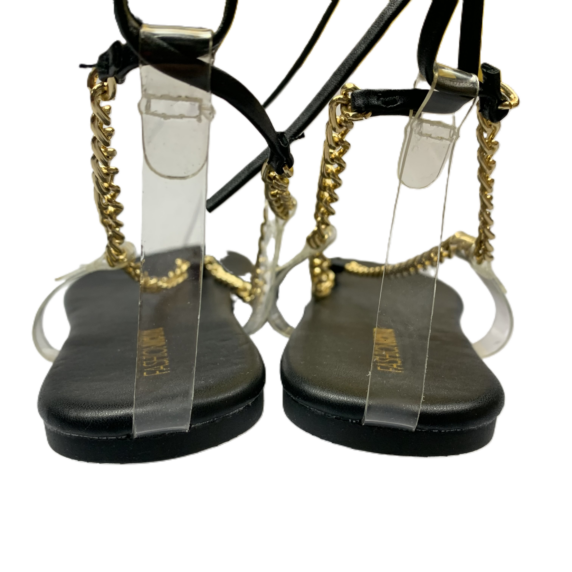 Sandals Flats By Fashion Nova In Black Gold, Size: 7
