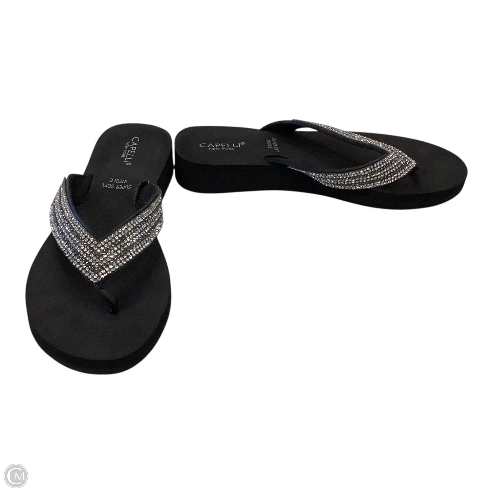 Sandals Flip Flops By Capelli In Black & Silver, Size: 9
