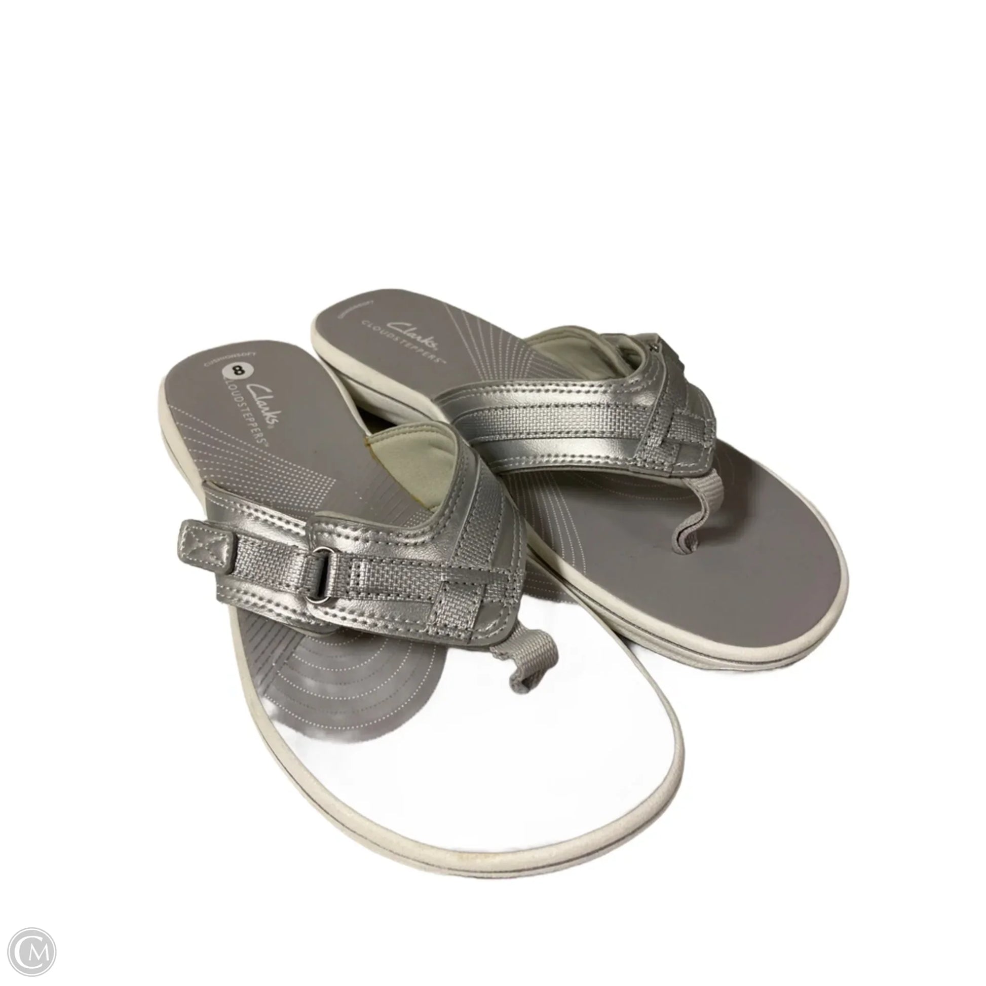 Sandals Flip Flops By Clarks In Silver, Size: 8
