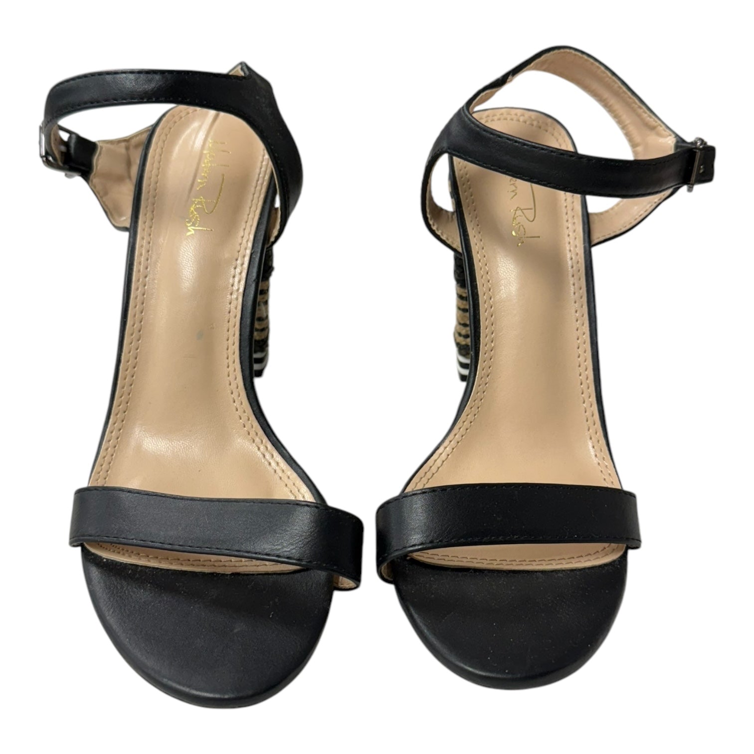 Sandals Heels Block By Modern Rush In Black & Tan, Size:8.5