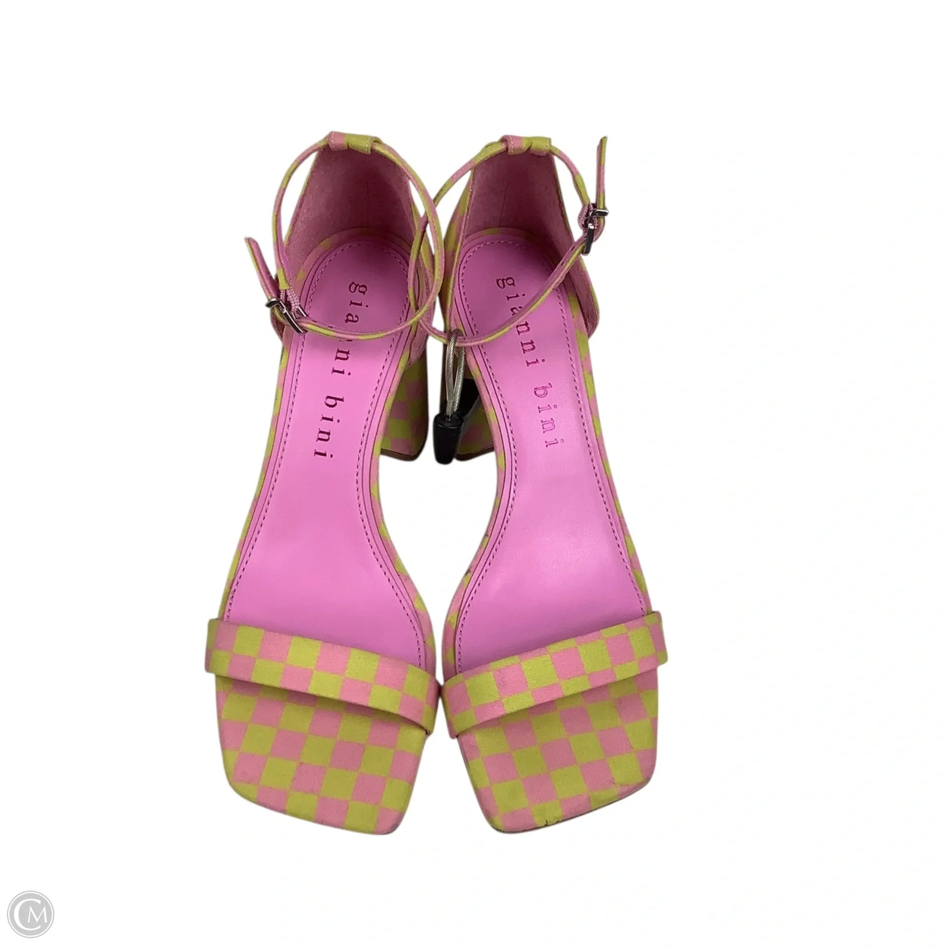 Sandals Heels Block By Gianni Bini In Green & Pink, Size: 8.5