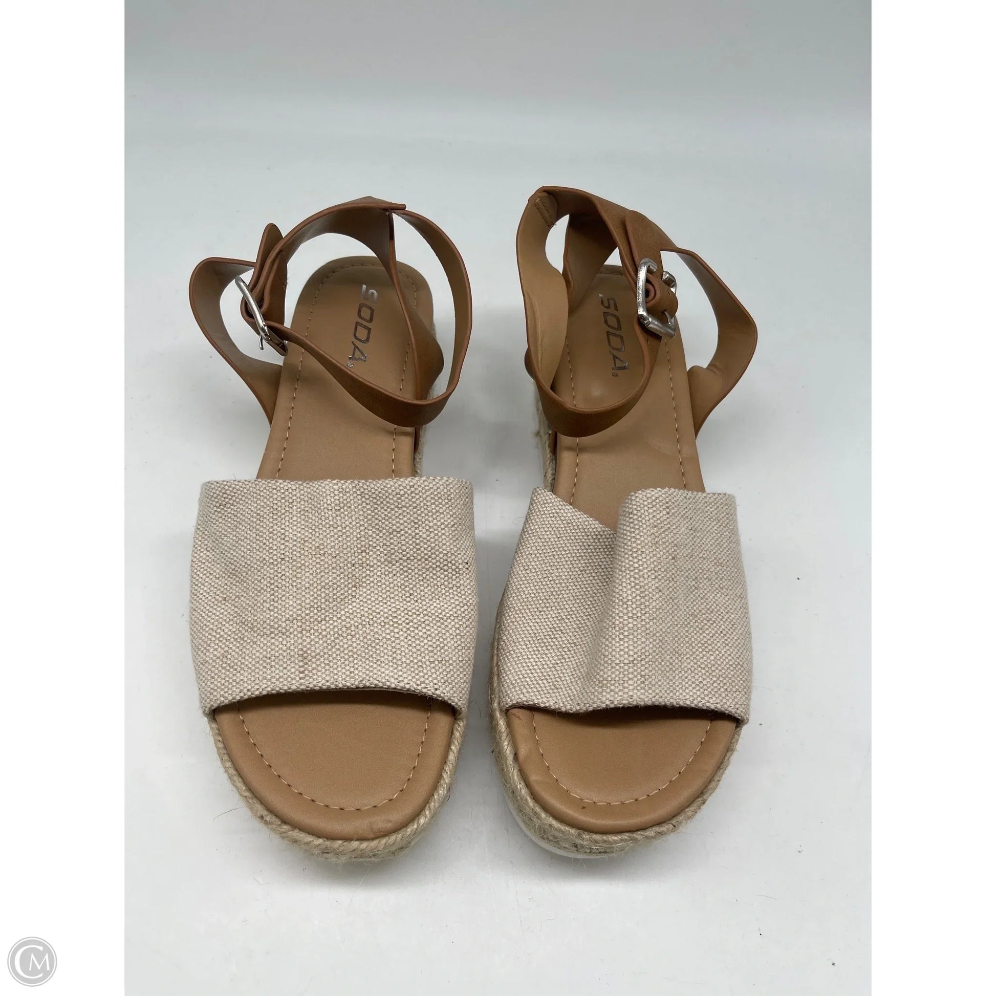 Step into sophistication with Soda's Cream Platform Sandals Heels, Size 8. Elevate confidently!