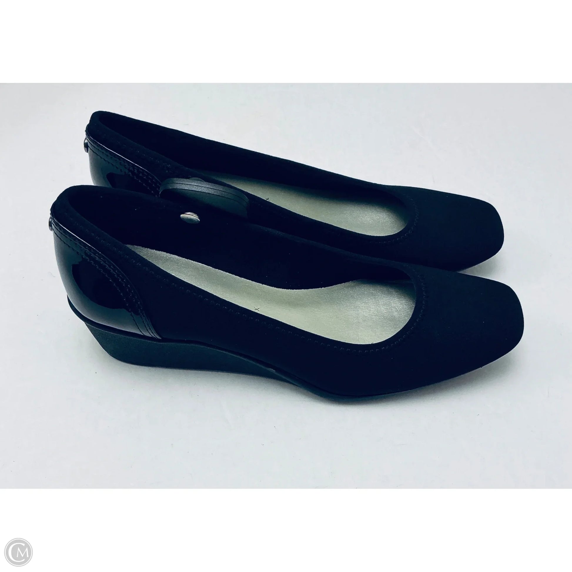 Step up your shoe game with these Anne Klein wedge heels in classic black. Size 7. Elevate your outfit with style and comfort. Step out with confidence and flair. Buy now!