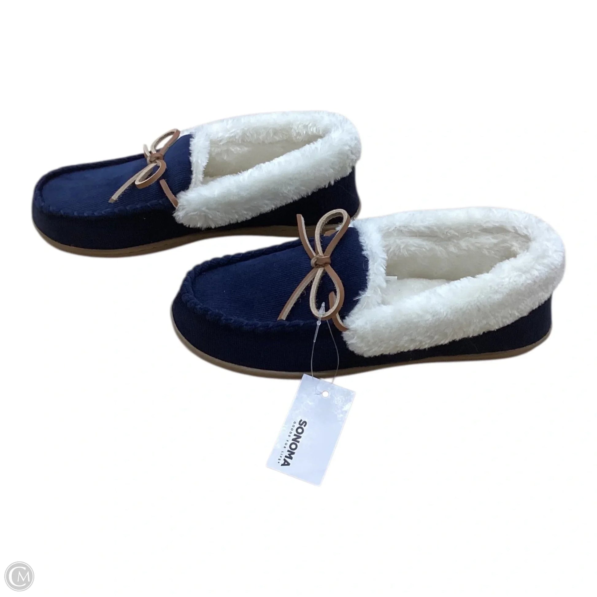 Step into comfort and style with Sonoma's Blue & Cream Slippers, Size 7.5. Experience luxury with every step.