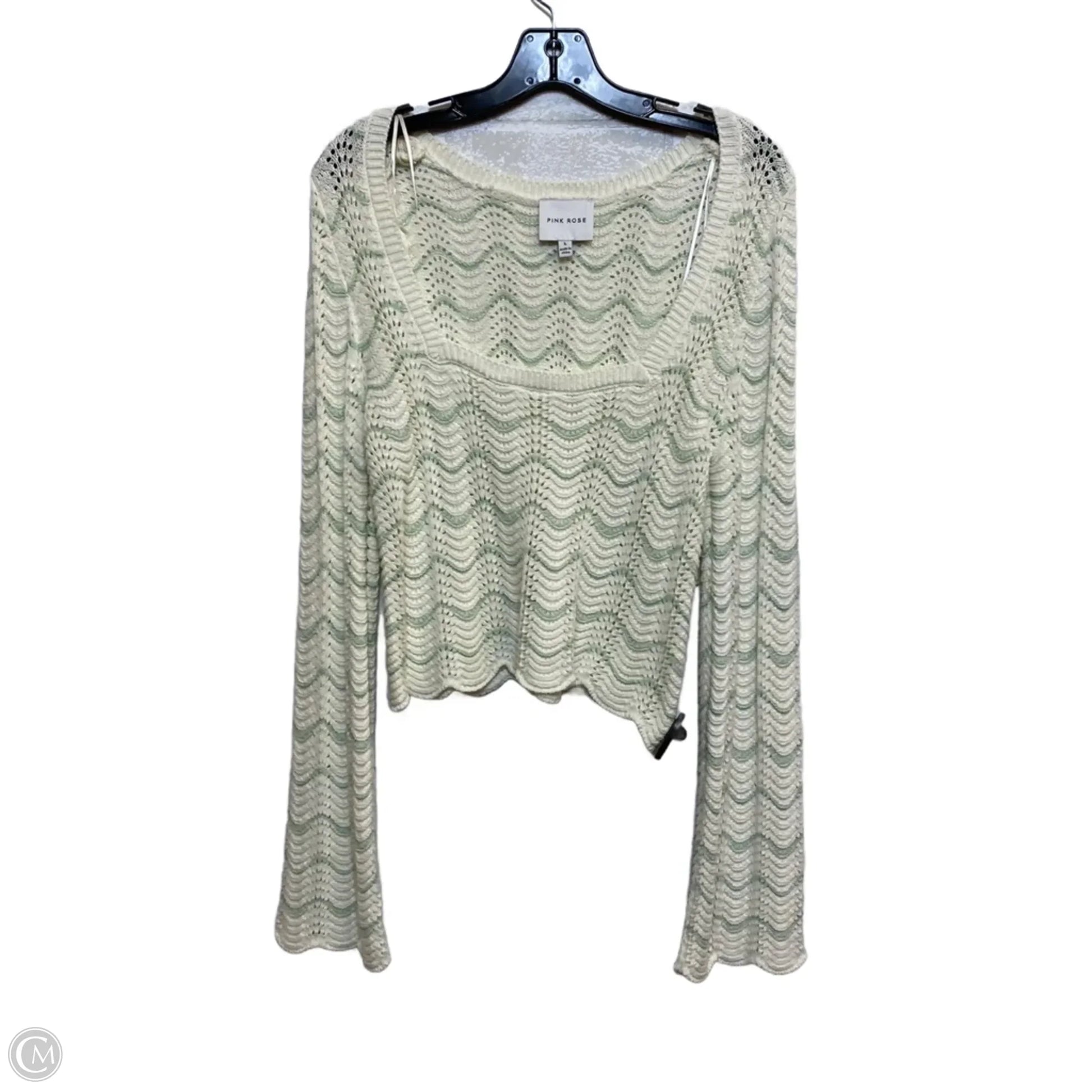 Sweater By Pink Rose In Cream & Green, Size: L