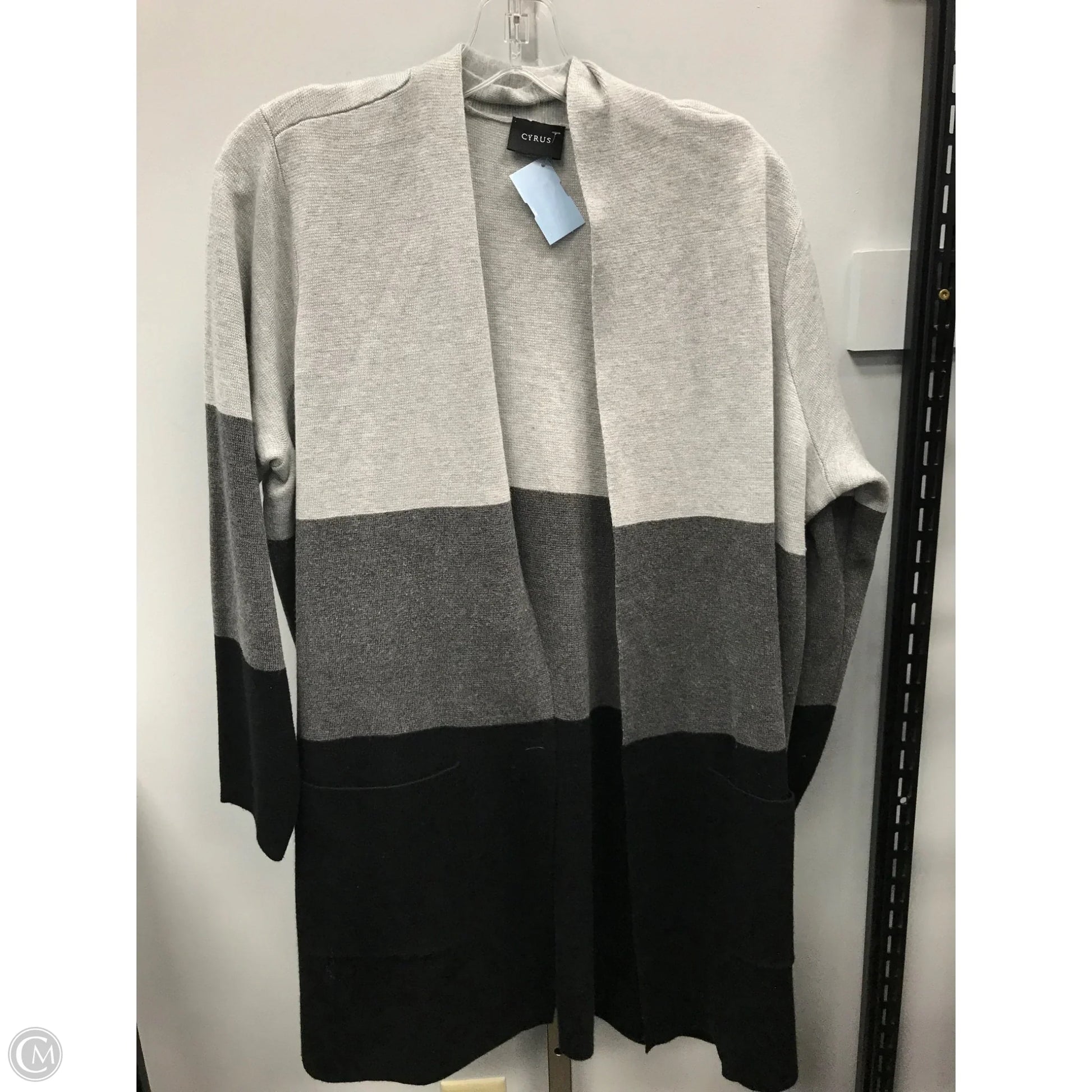 Sweater Cardigan By Cyrus In Black & Grey, Size: 1x