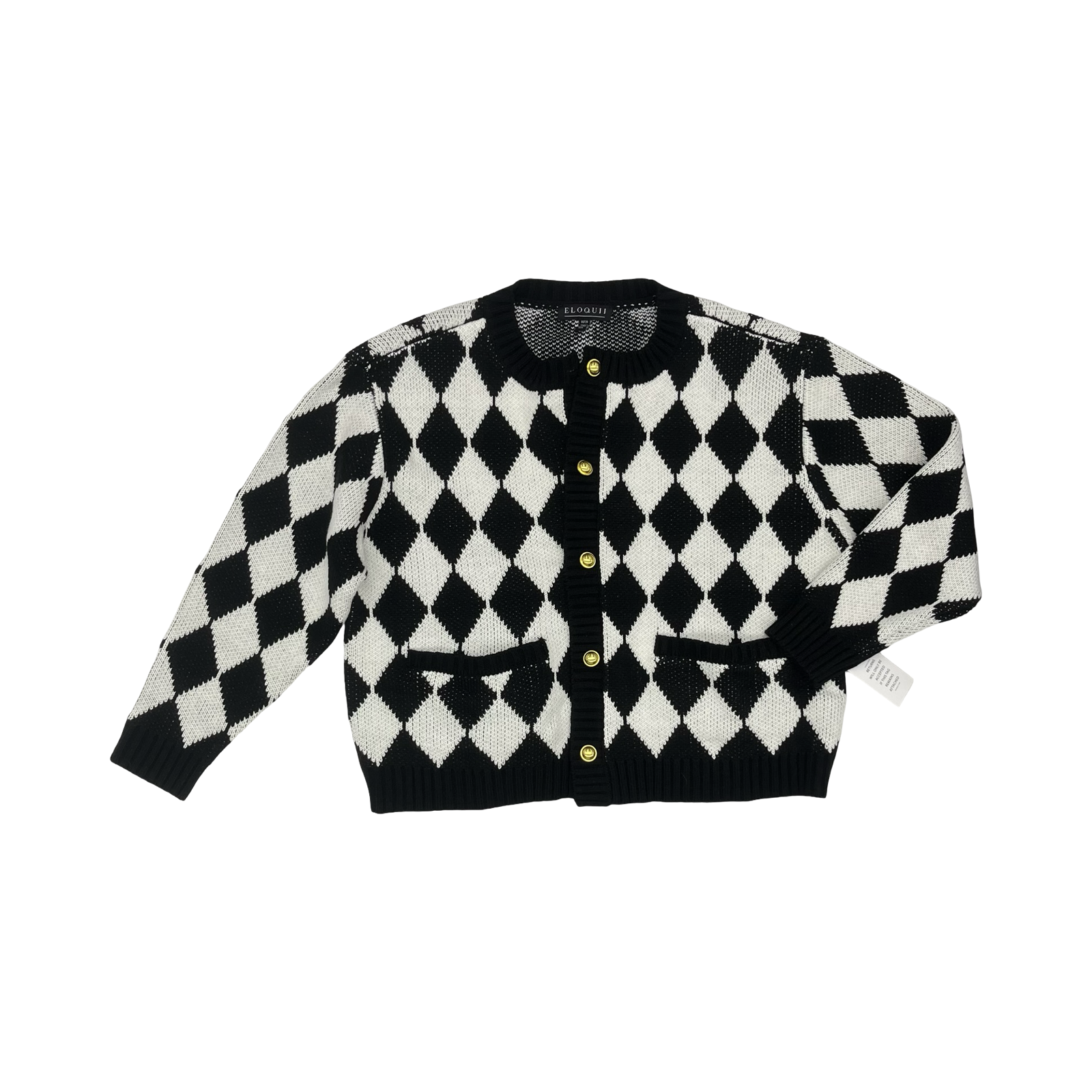 Sweater Cardigan By Eloquii In Black & White, Size:2X
