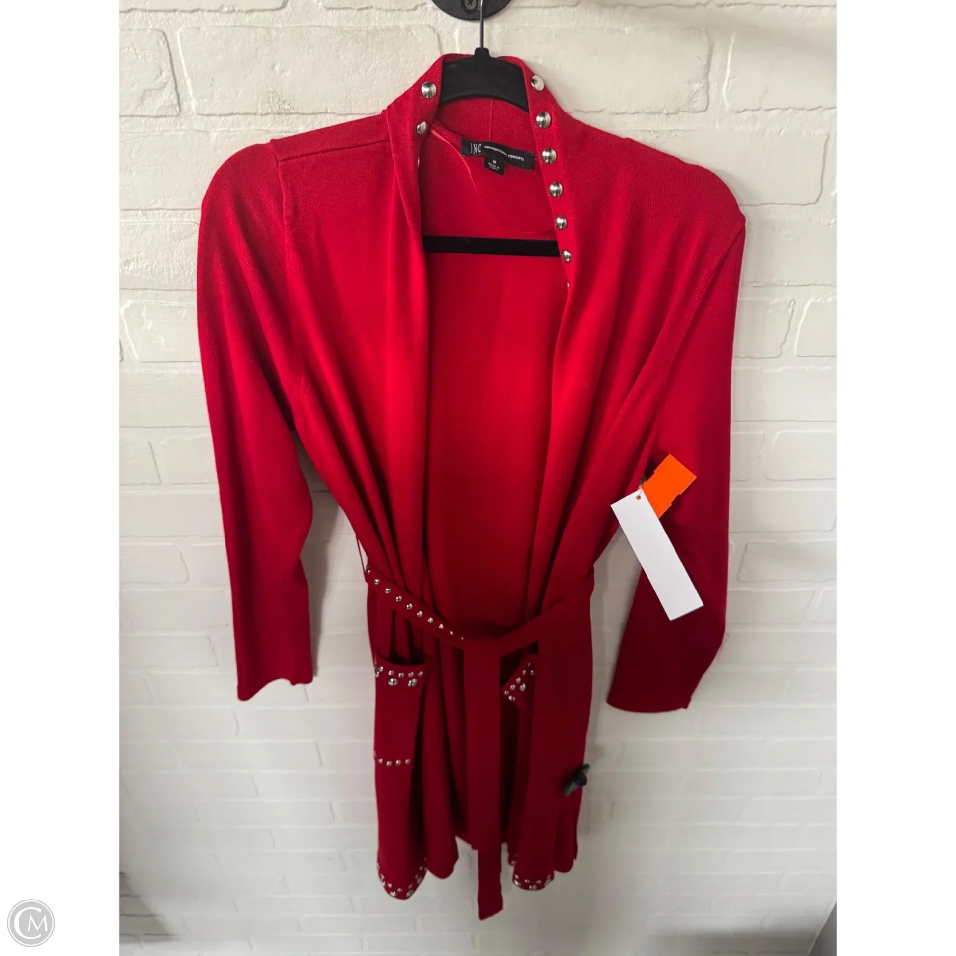 Sweater Cardigan By Inc In Red & Silver, Size: M
