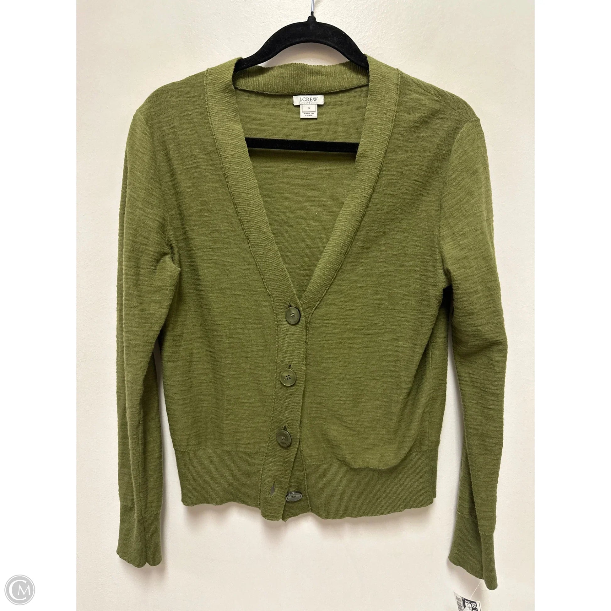 Stay cozy & chic in this J. Crew green sweater cardigan, size S. Effortlessly stylish for any occasion with a twist.