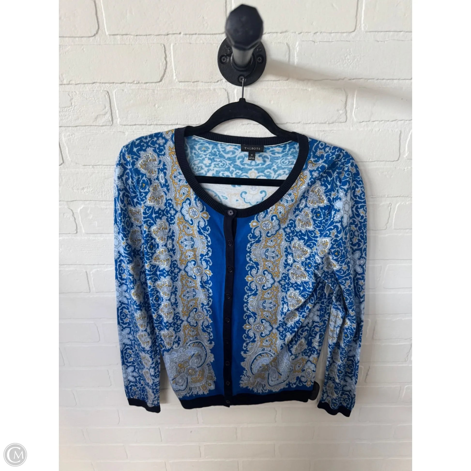 Sweater Cardigan By Talbots In Blue & Yellow, Size: M