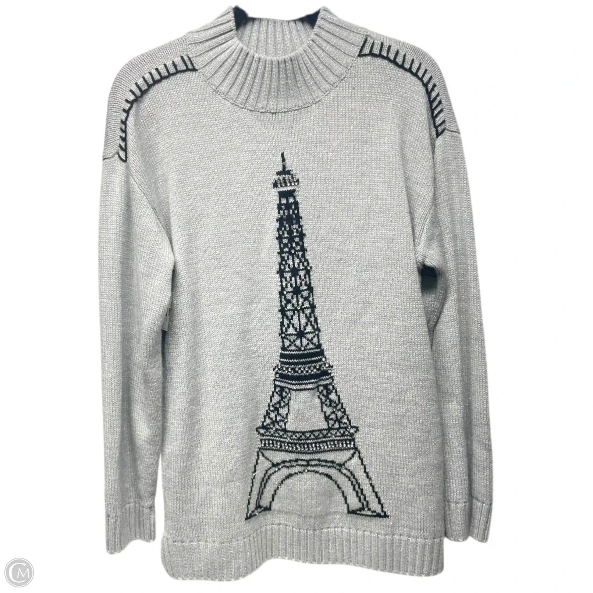 Sweater Designer By Karl Lagerfeld In Black & Grey, Size: M