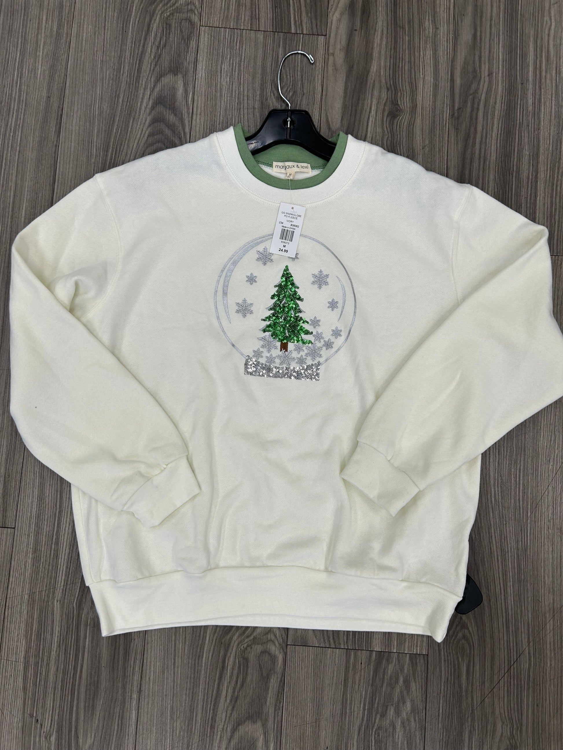 Sweatshirt Crewneck By Clothes Mentor In Green & White, Size: M