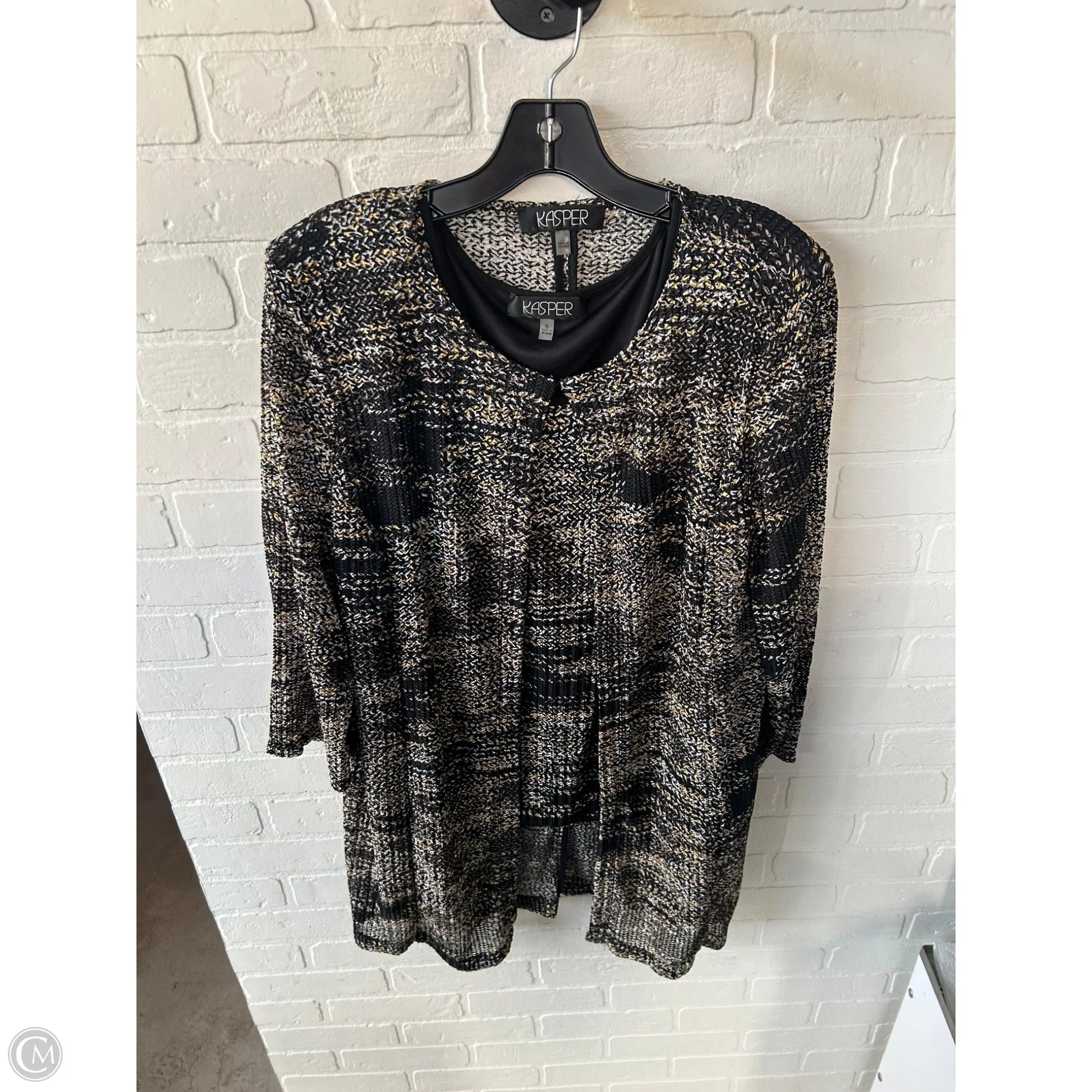 Top 2pc Long Sleeve By Kasper In Black & Gold, Size: Xl