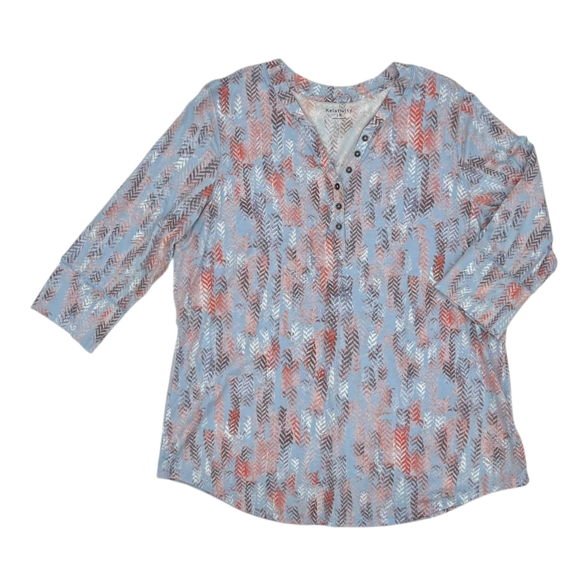 Top 3/4 Sleeve By Relativity In Blue & Orange, Size:1X