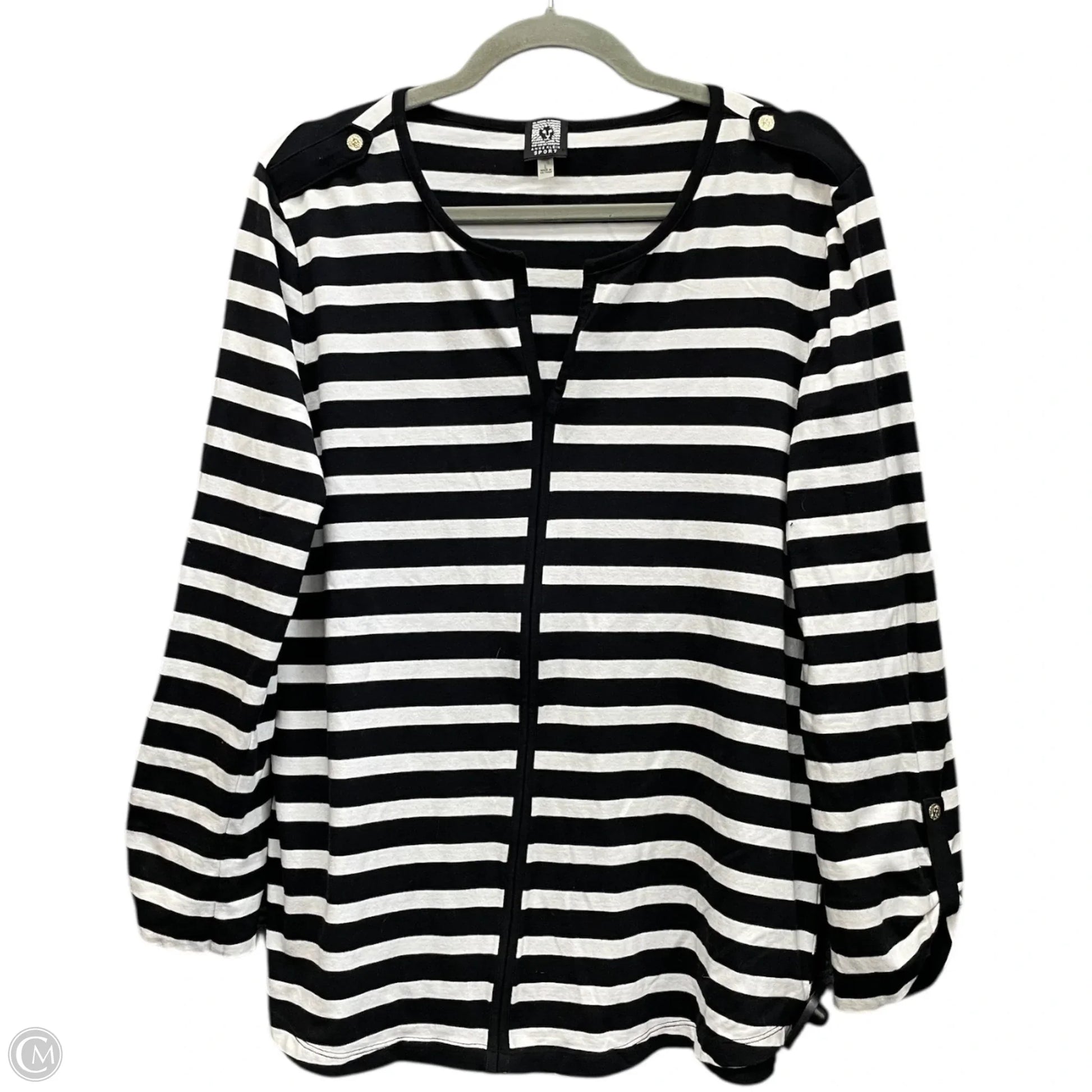 Top Long Sleeve By Anne Klein In Black & White, Size: L