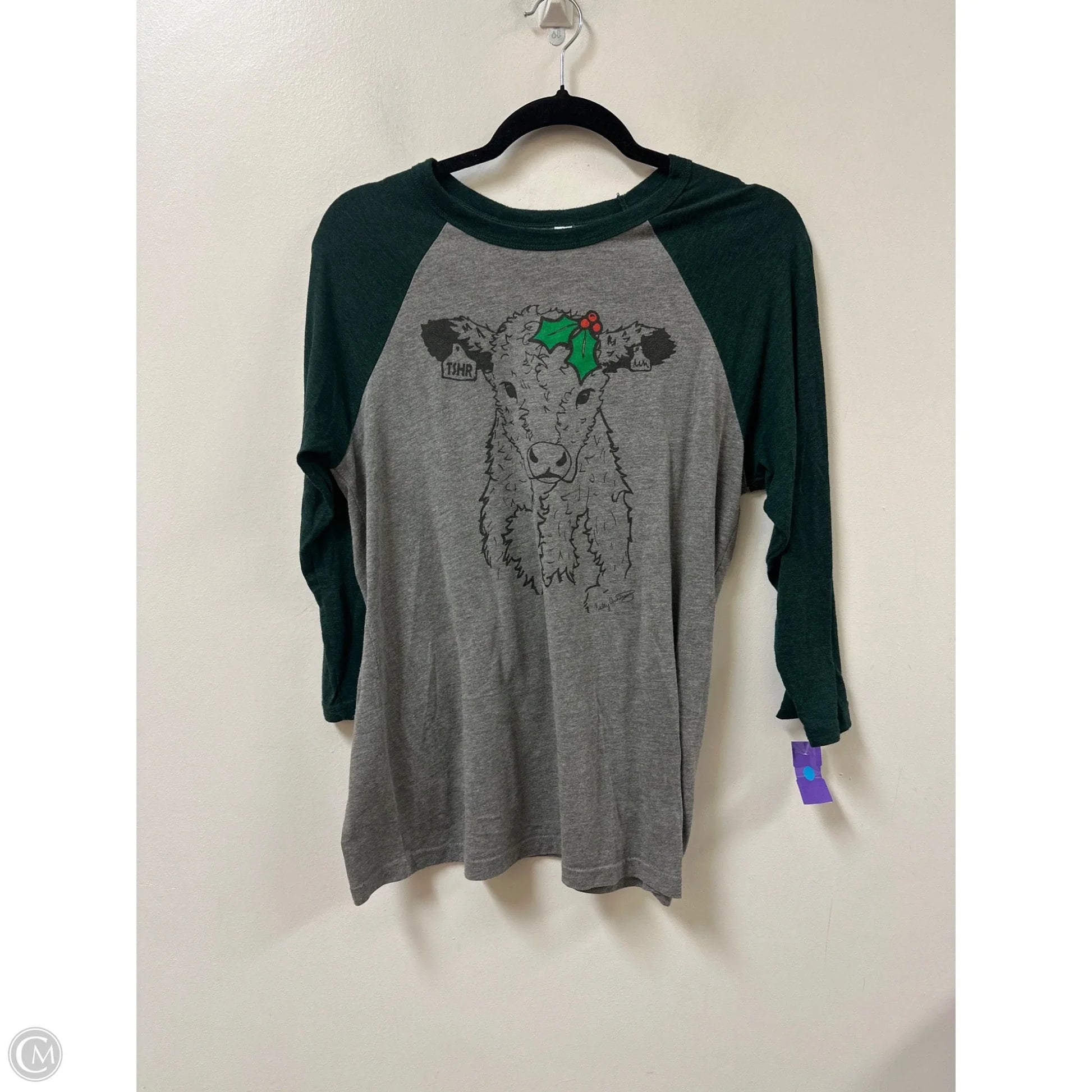 Top Long Sleeve By Bella + Canvas In Green & Grey, Size: M