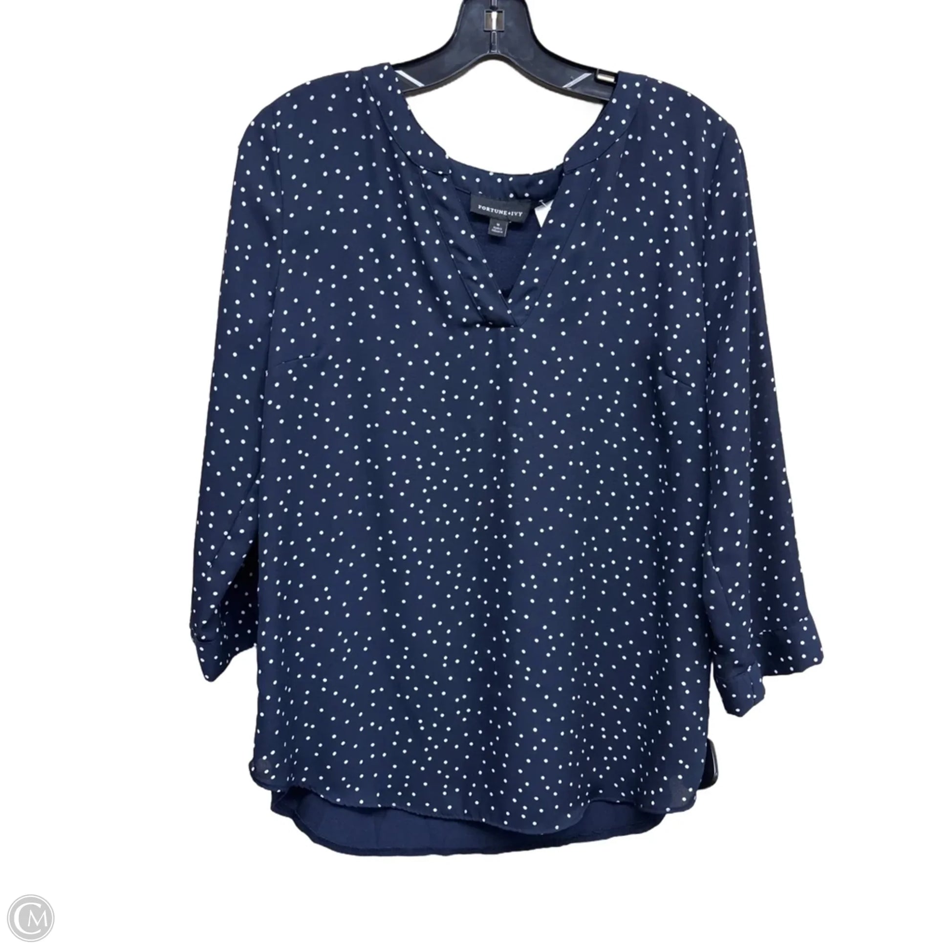 Top Long Sleeve By Fortune & Ivy In Polkadot Pattern, Size: M