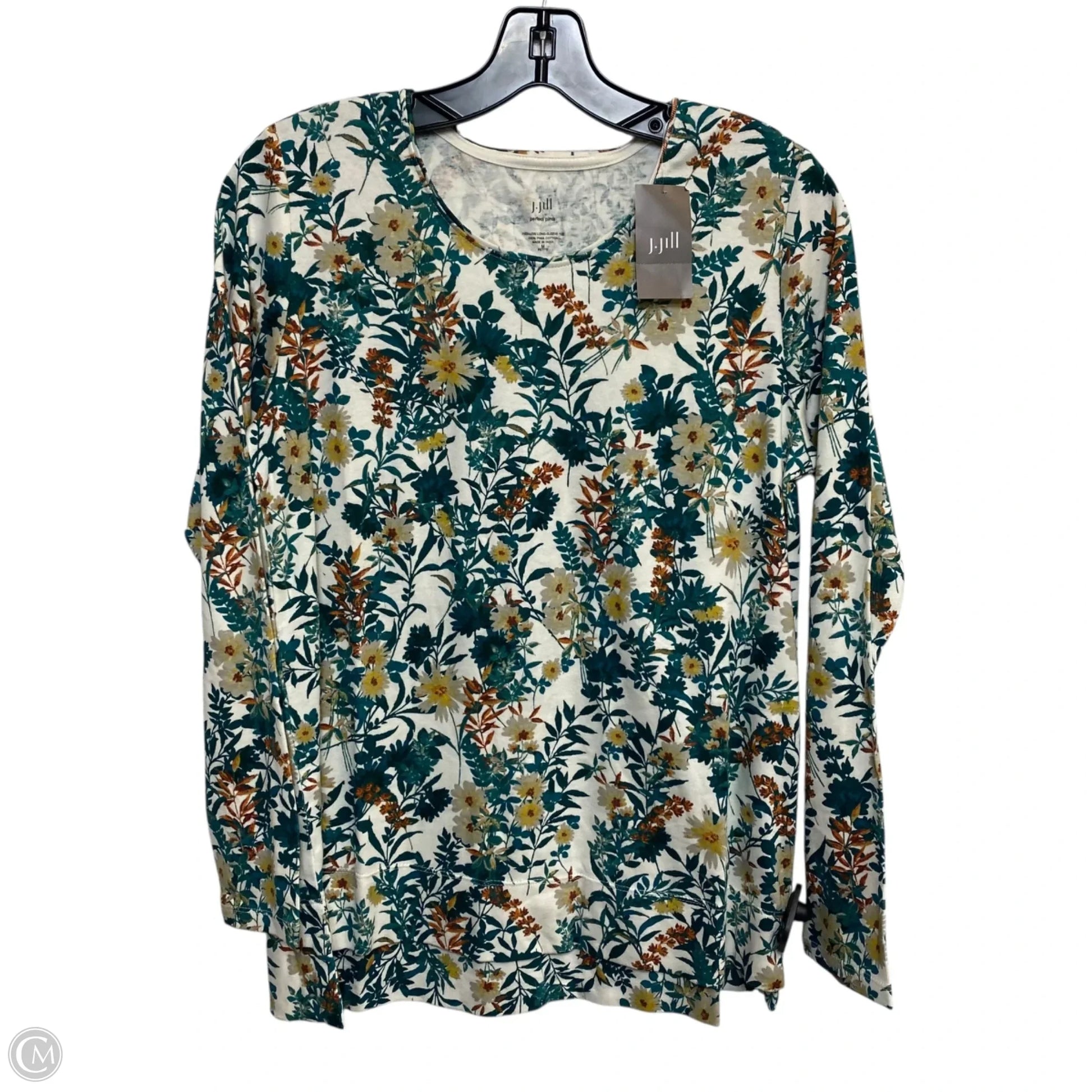 Top Long Sleeve By J. Jill In Cream & Green, Size: Mp