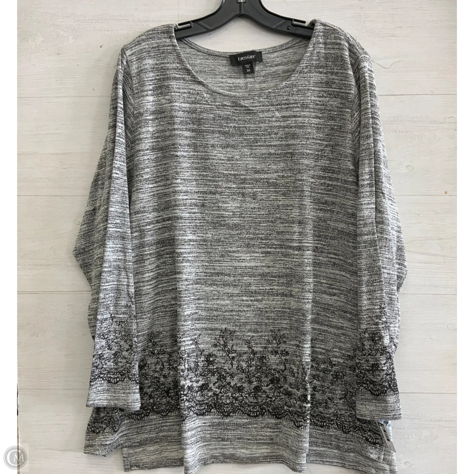 Karen Kane's Grey Top in size 3X exudes effortless chic with its versatile long sleeves and flattering fit. Elevate your wardrobe with this timeless piece.