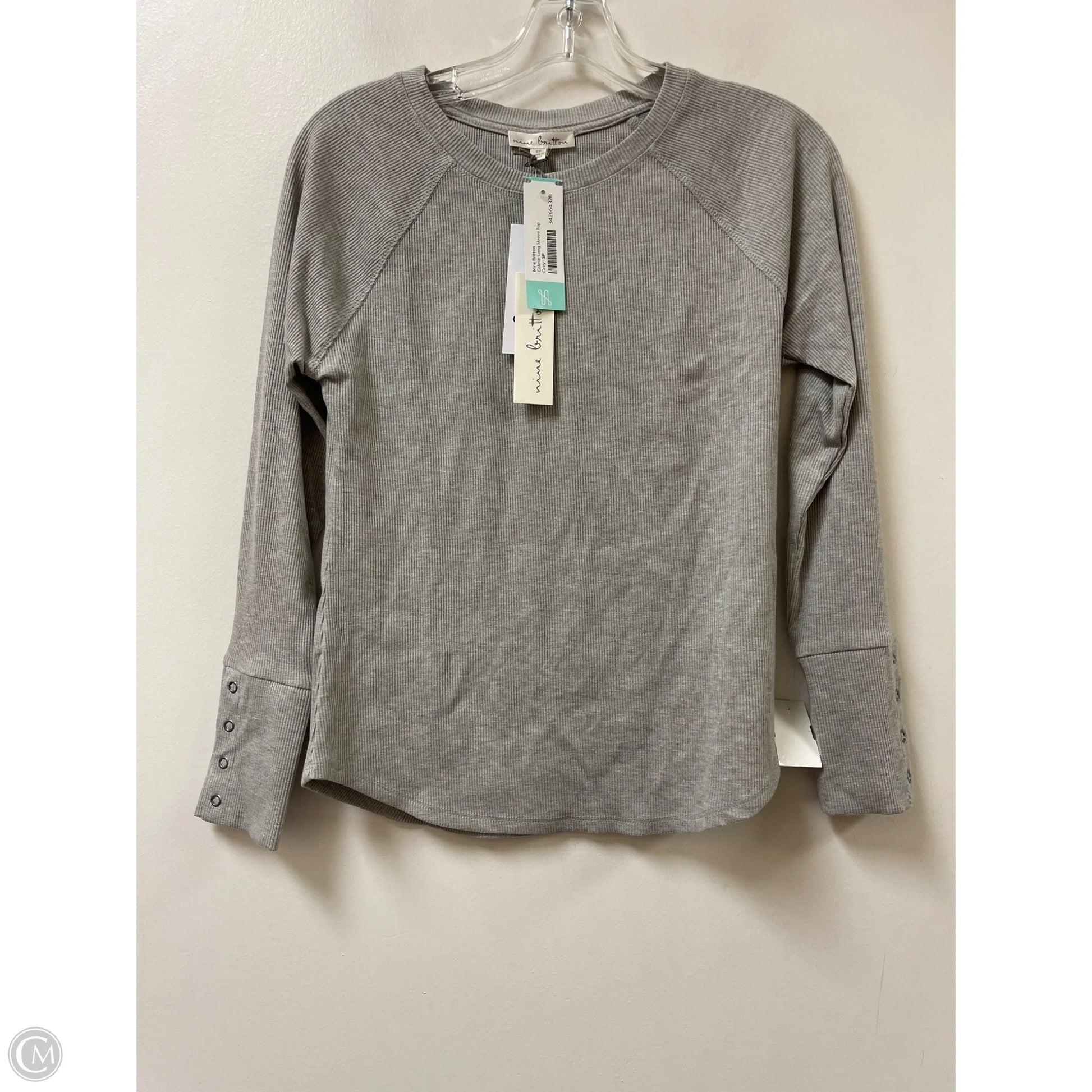 Top Long Sleeve By Nine Britton In Grey, Size: S