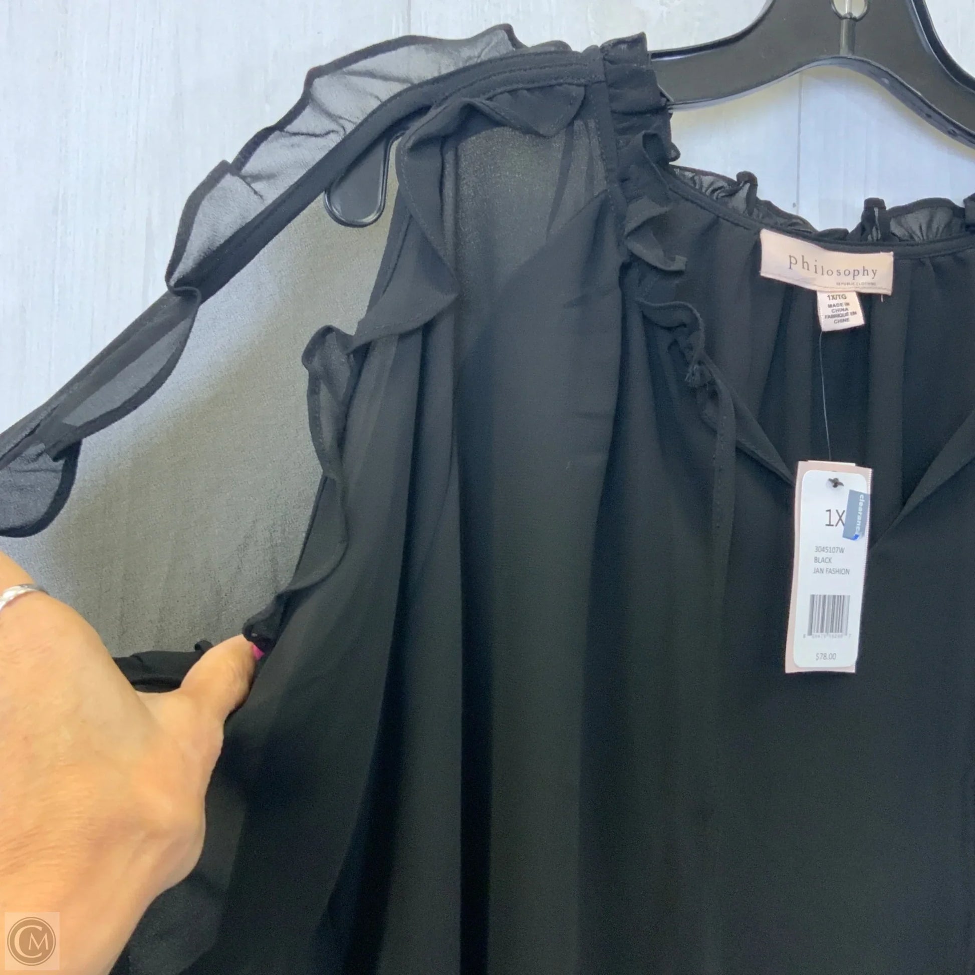 Top Long Sleeve By Philosophy In Black, Size: 1x