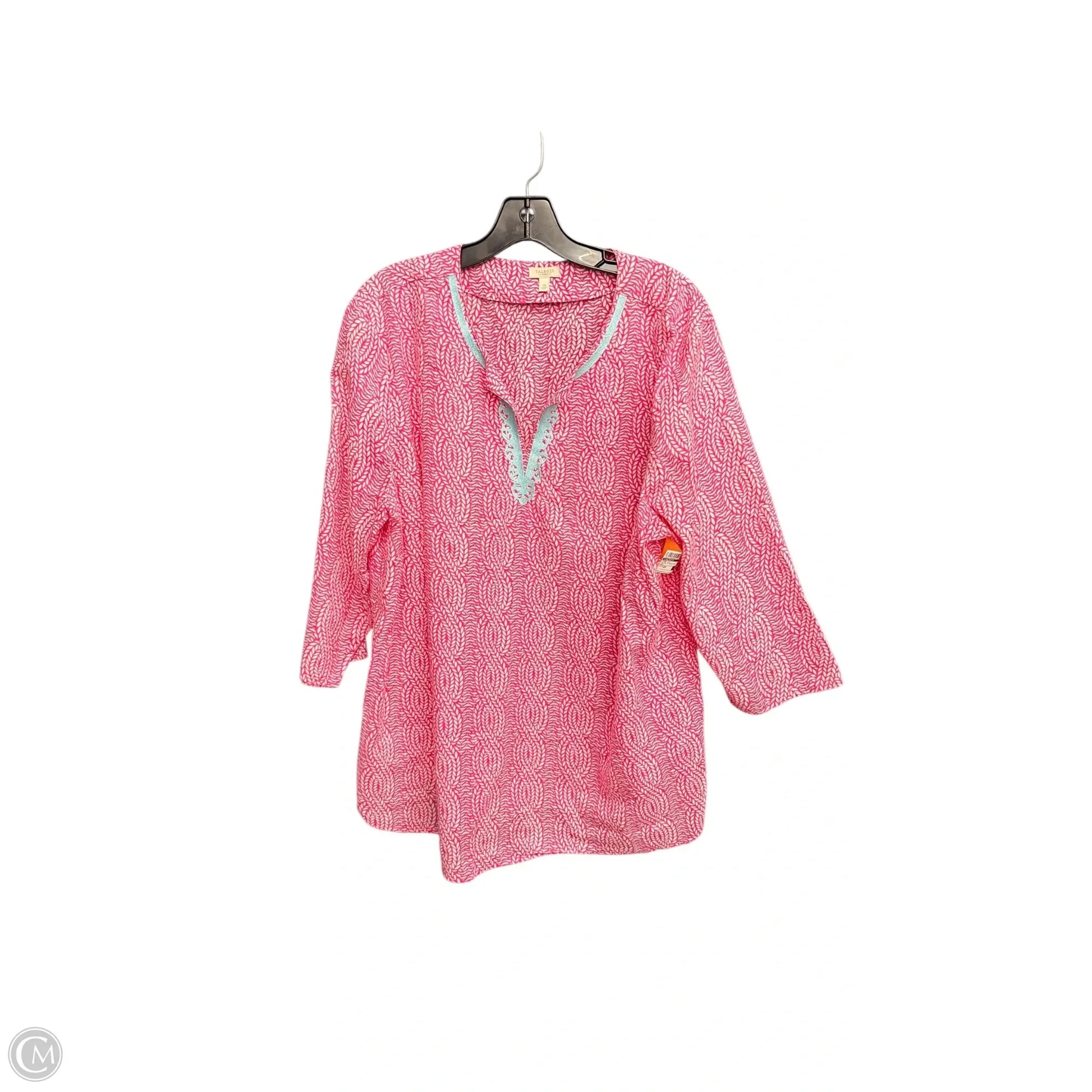 Top Long Sleeve By Talbots In Pink & White, Size: 2x