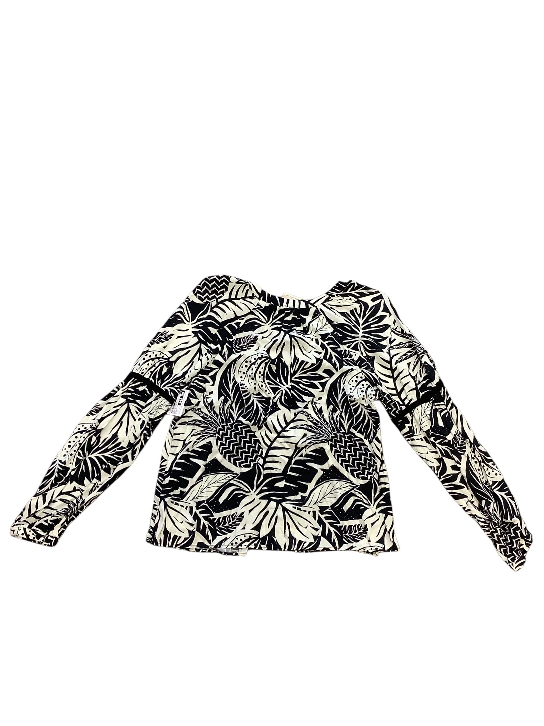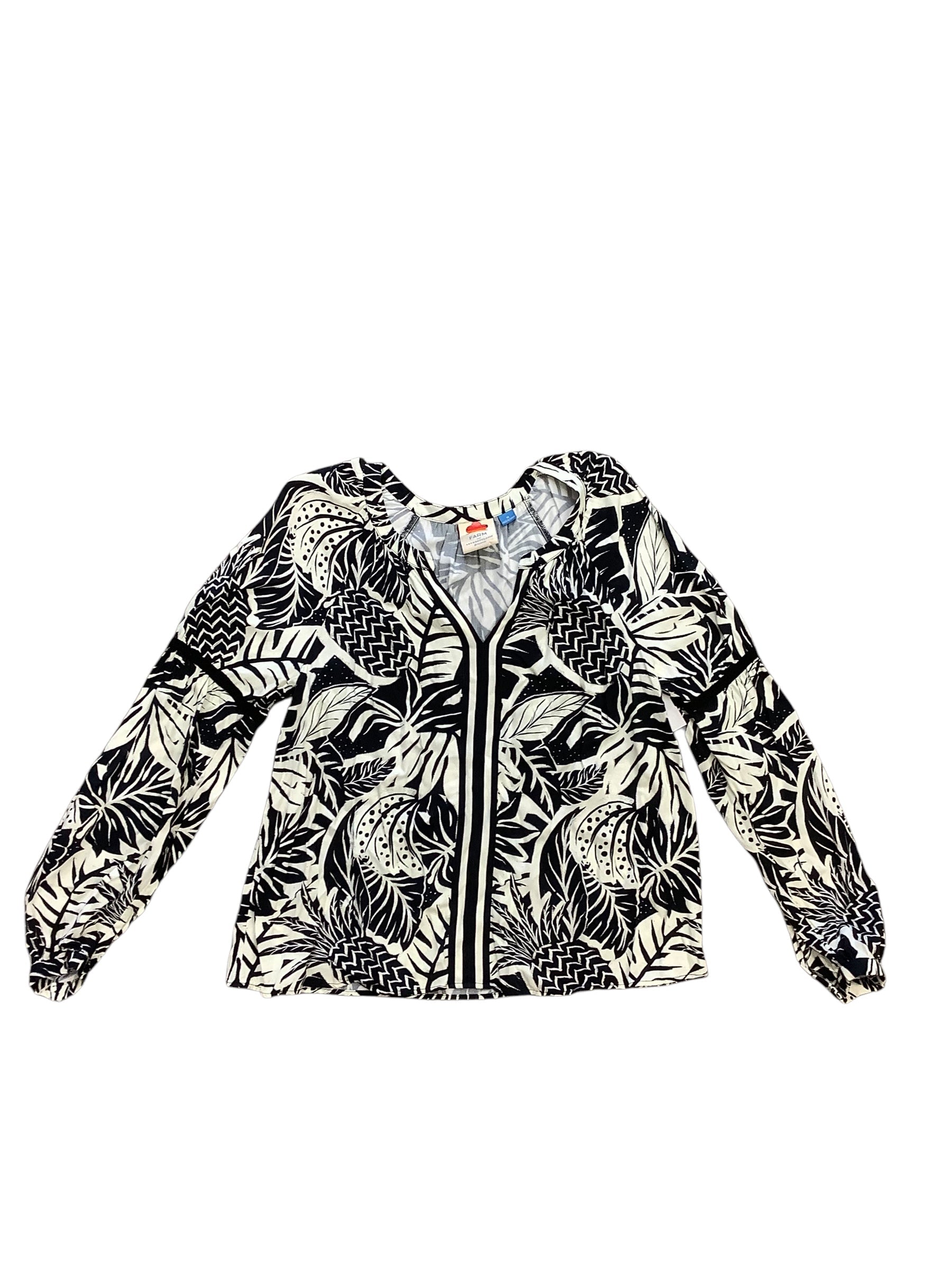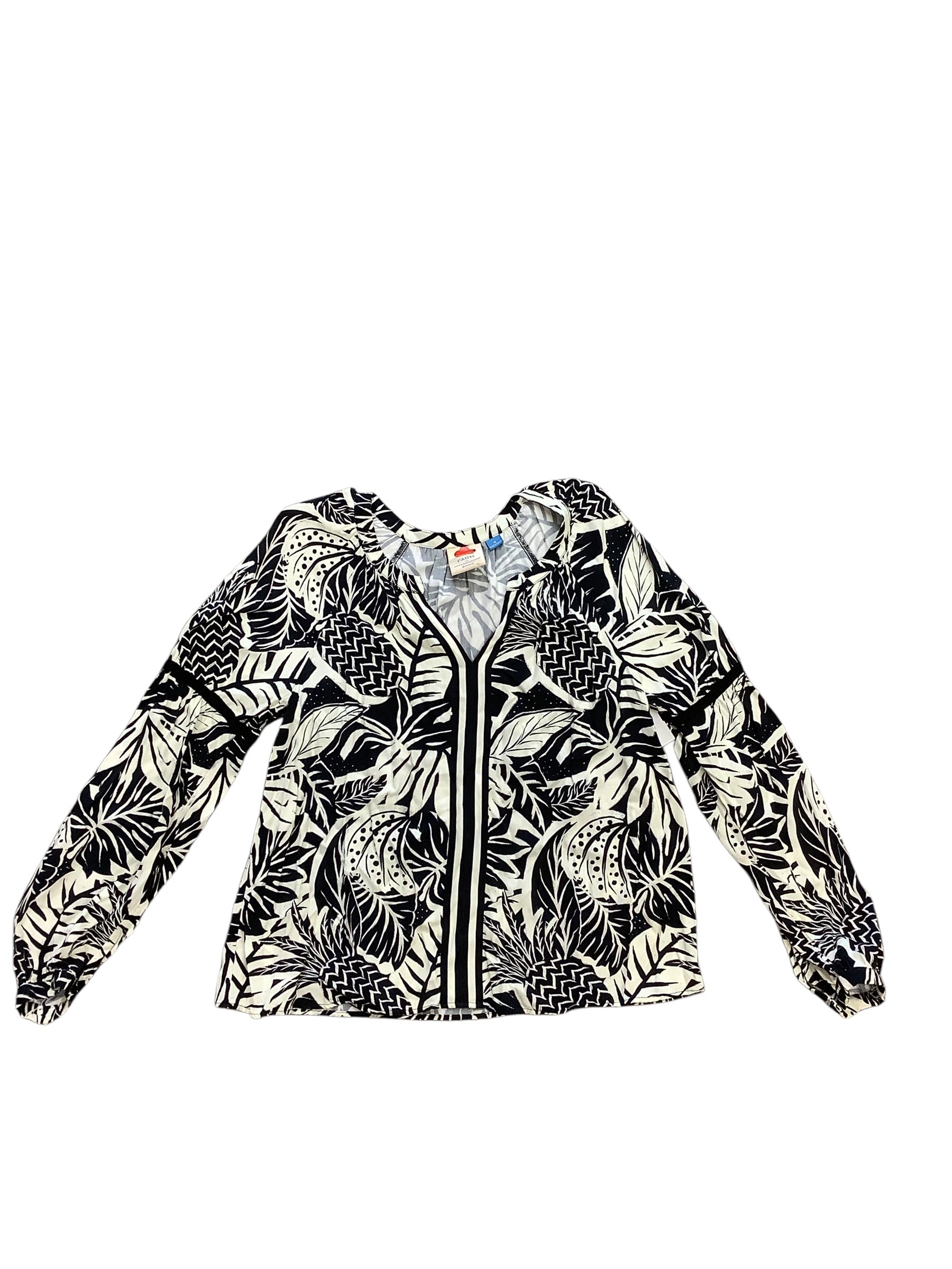 Top Long Sleeve Designer By Farm Rio In Black & White, Size: M