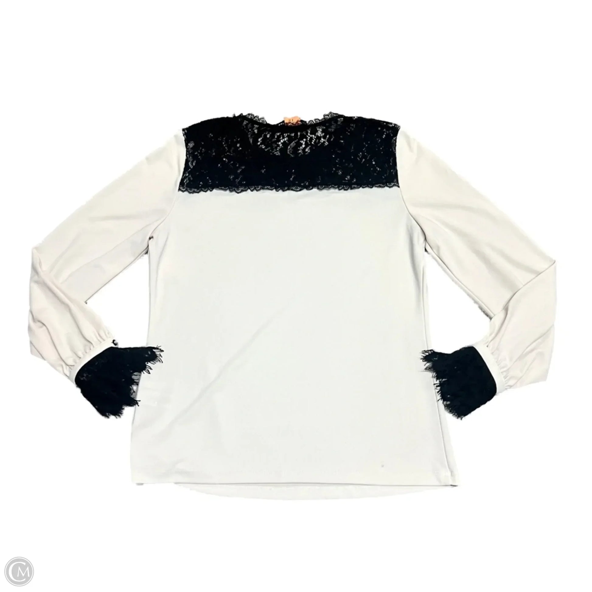 Top Long Sleeve Designer By Karl Lagerfeld In Black & Cream, Size: S