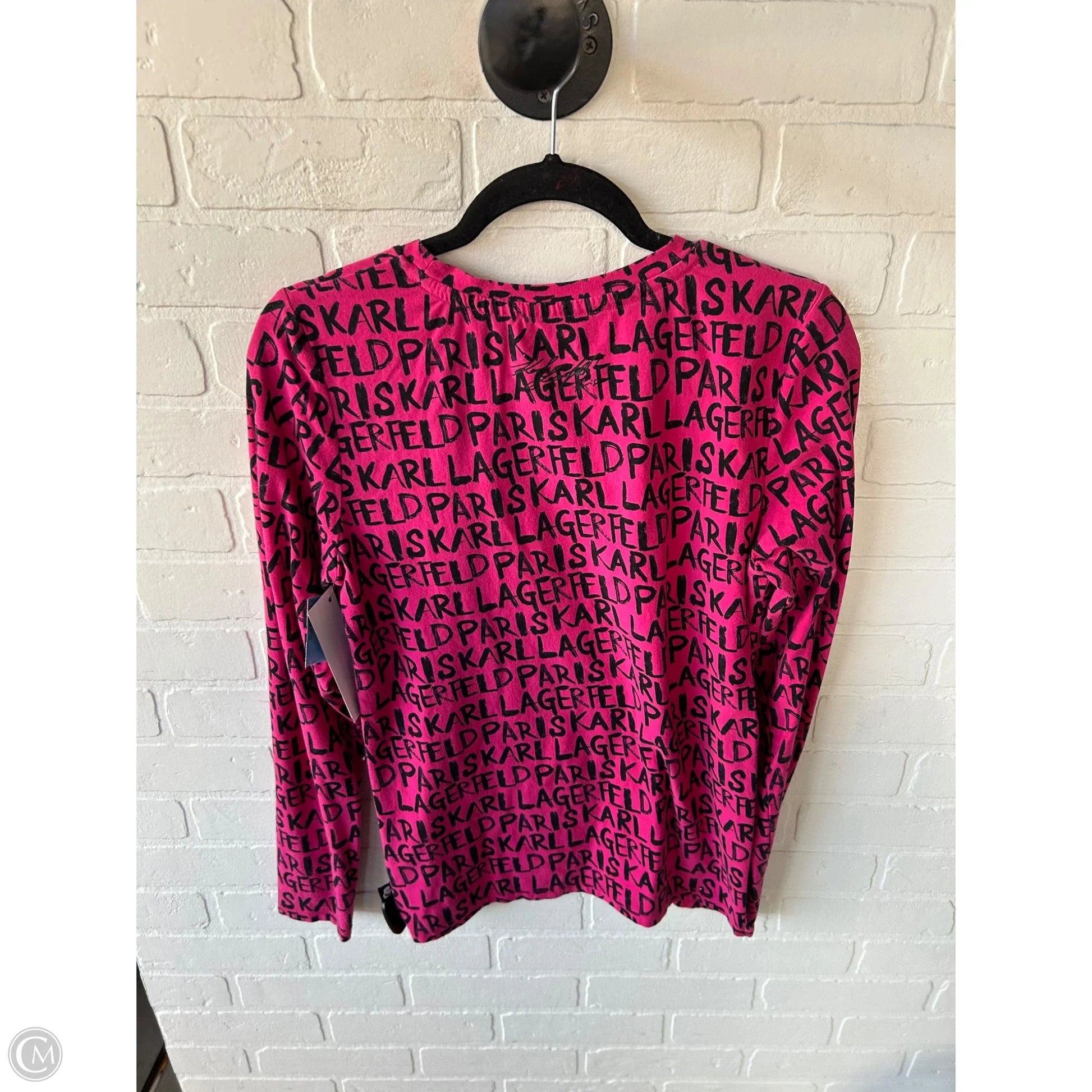 Top Long Sleeve Designer By Karl Lagerfeld In Black & Pink, Size: M