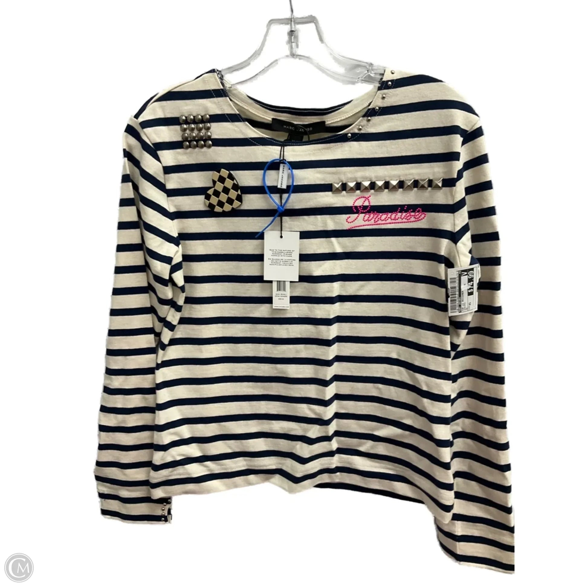 Top Long Sleeve Designer By Marc Jacobs In Striped, Size: Xs