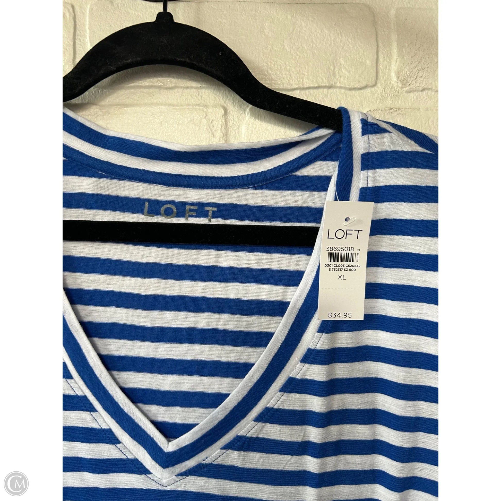 Top Short Sleeve Basic By Loft In Blue & White, Size: Xl