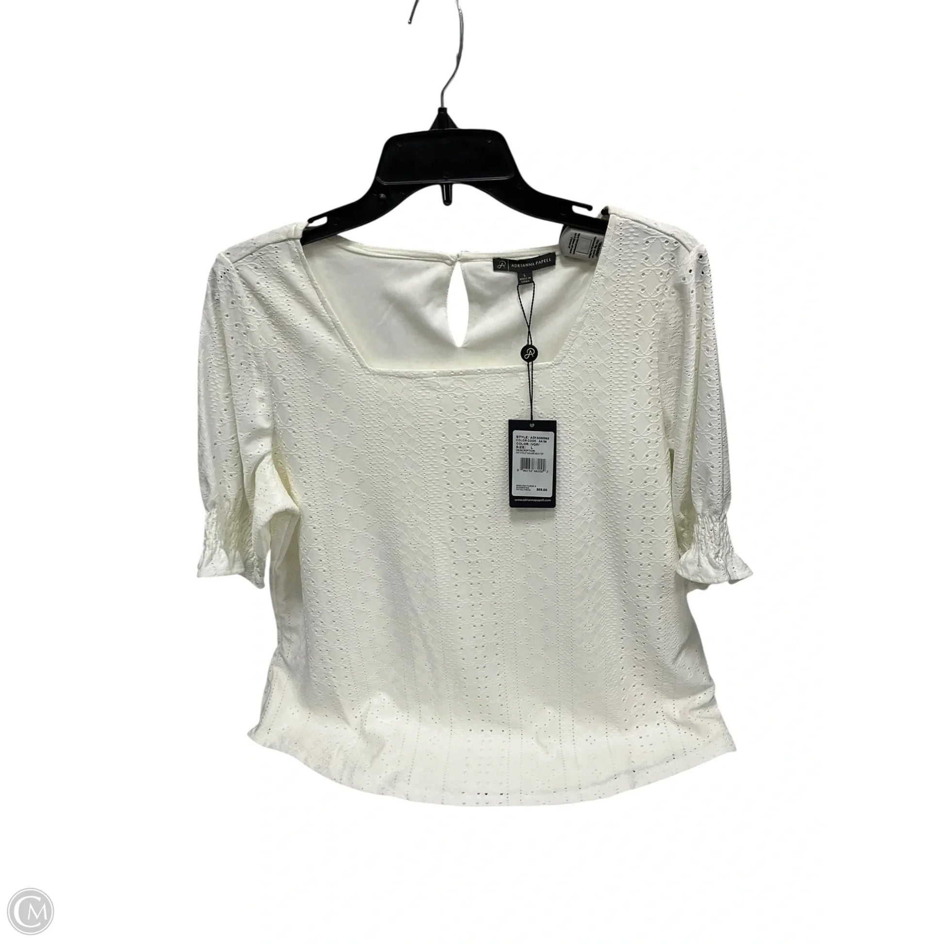 Top Short Sleeve By Adrianna Papell In White, Size: L