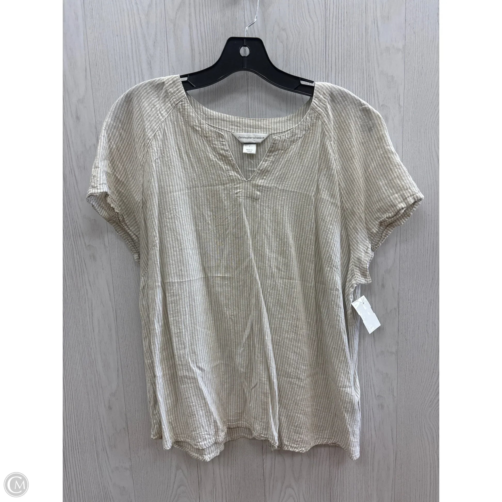 Top Short Sleeve By Cj Banks In Tan, Size: L