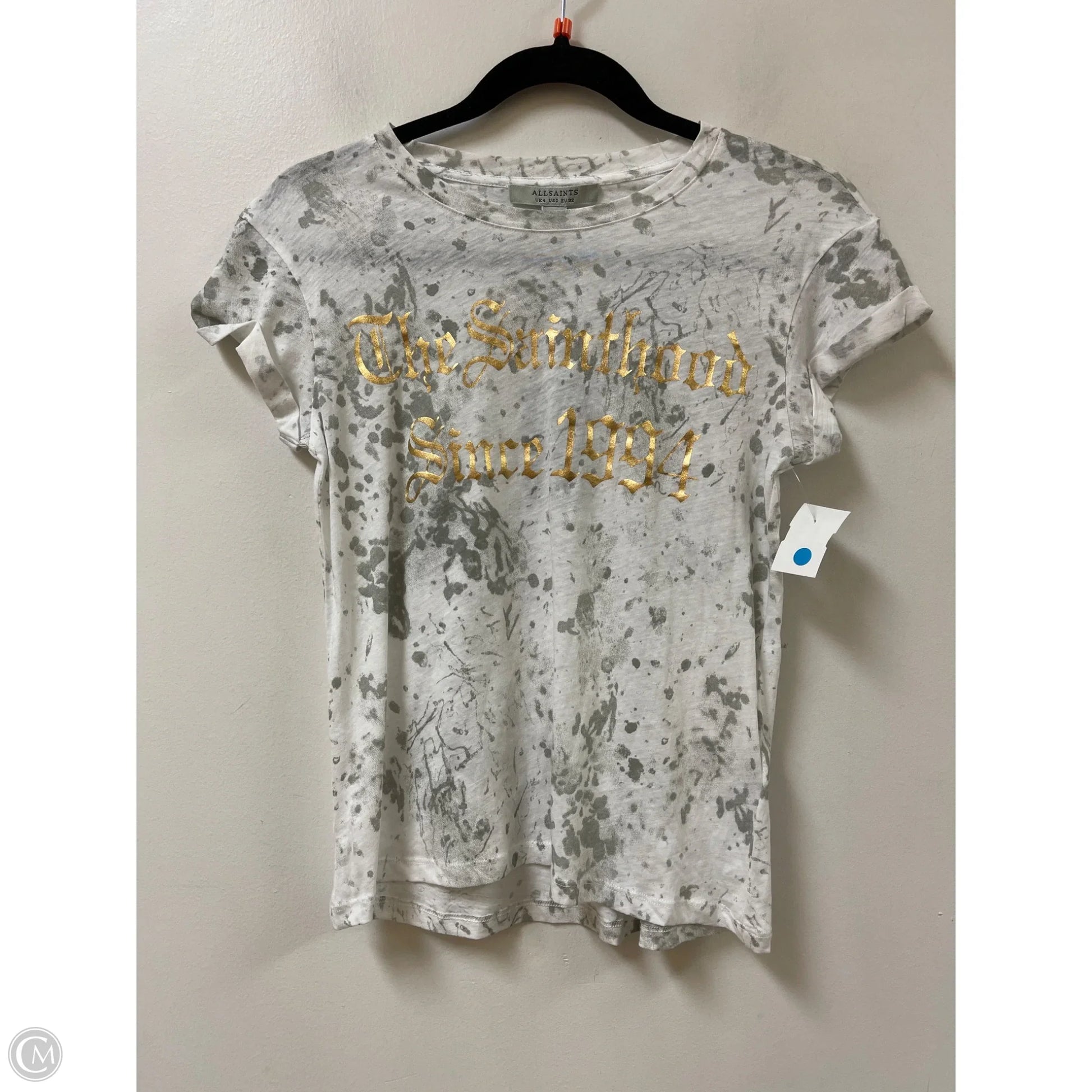 Top Short Sleeve Designer By All Saints In Grey & White, Size: Xs