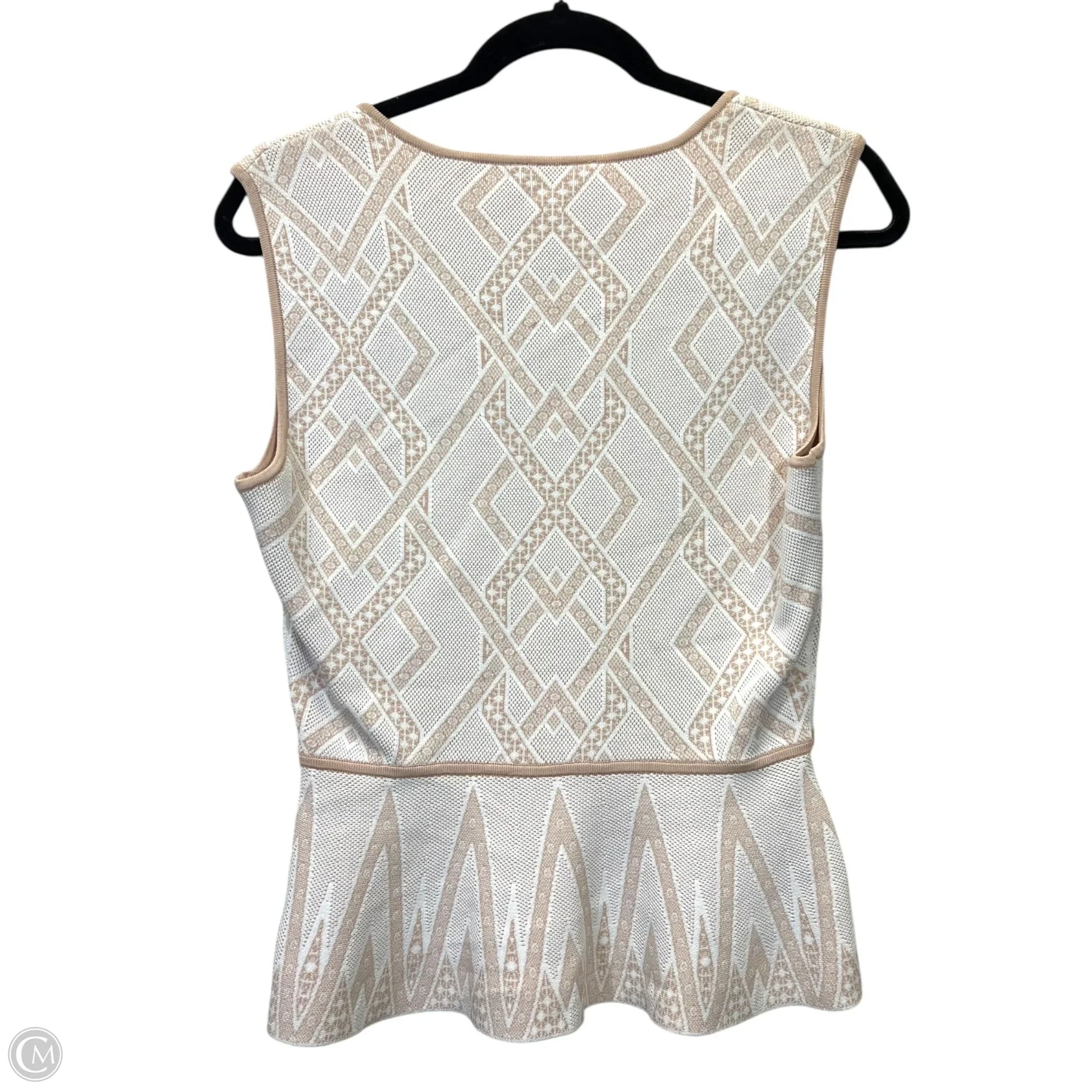 Top Sleeveless Designer By Bcbgmaxazria In Tan & White, Size: M