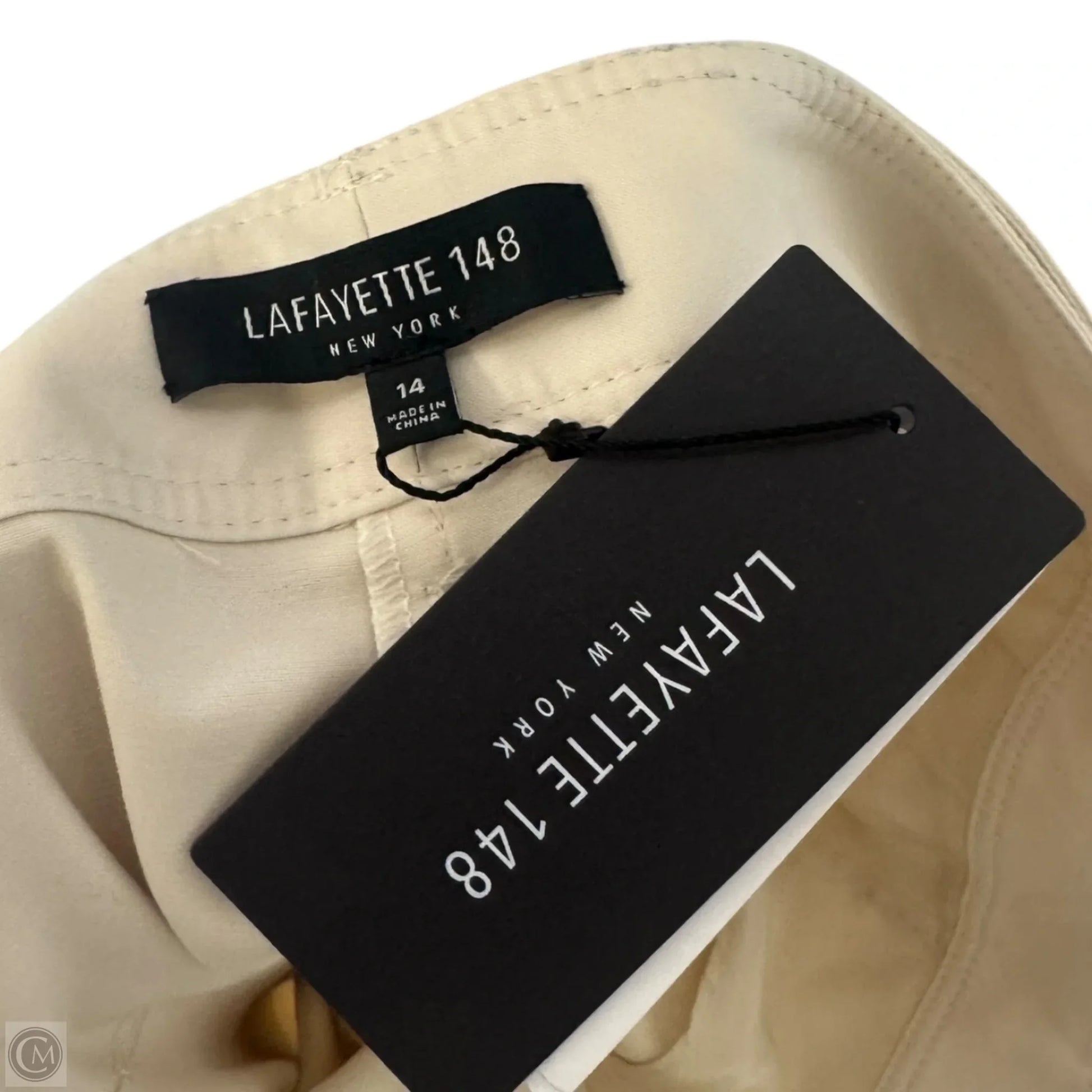 Tortoiseshell Belt Wide Leg Pants Designer By Lafayette 148 In Cream, Size: 14