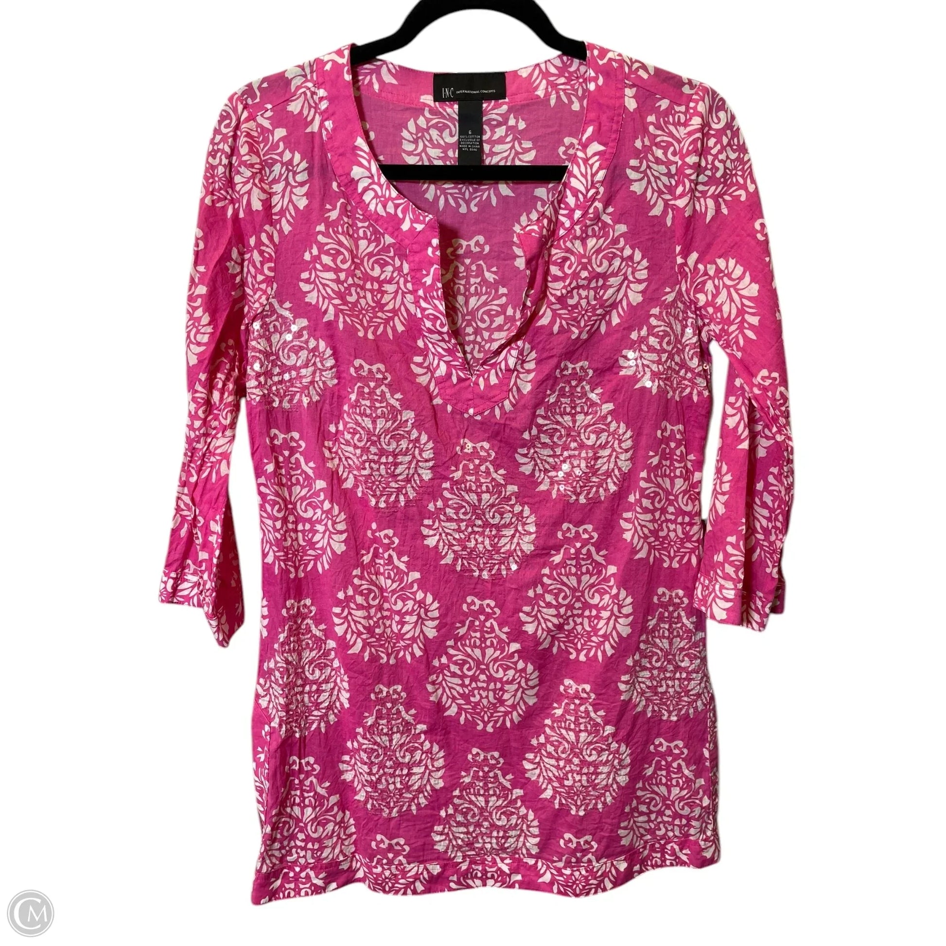 Tunic 3/4 Sleeve By International Concepts In Pink & White, Size: 6