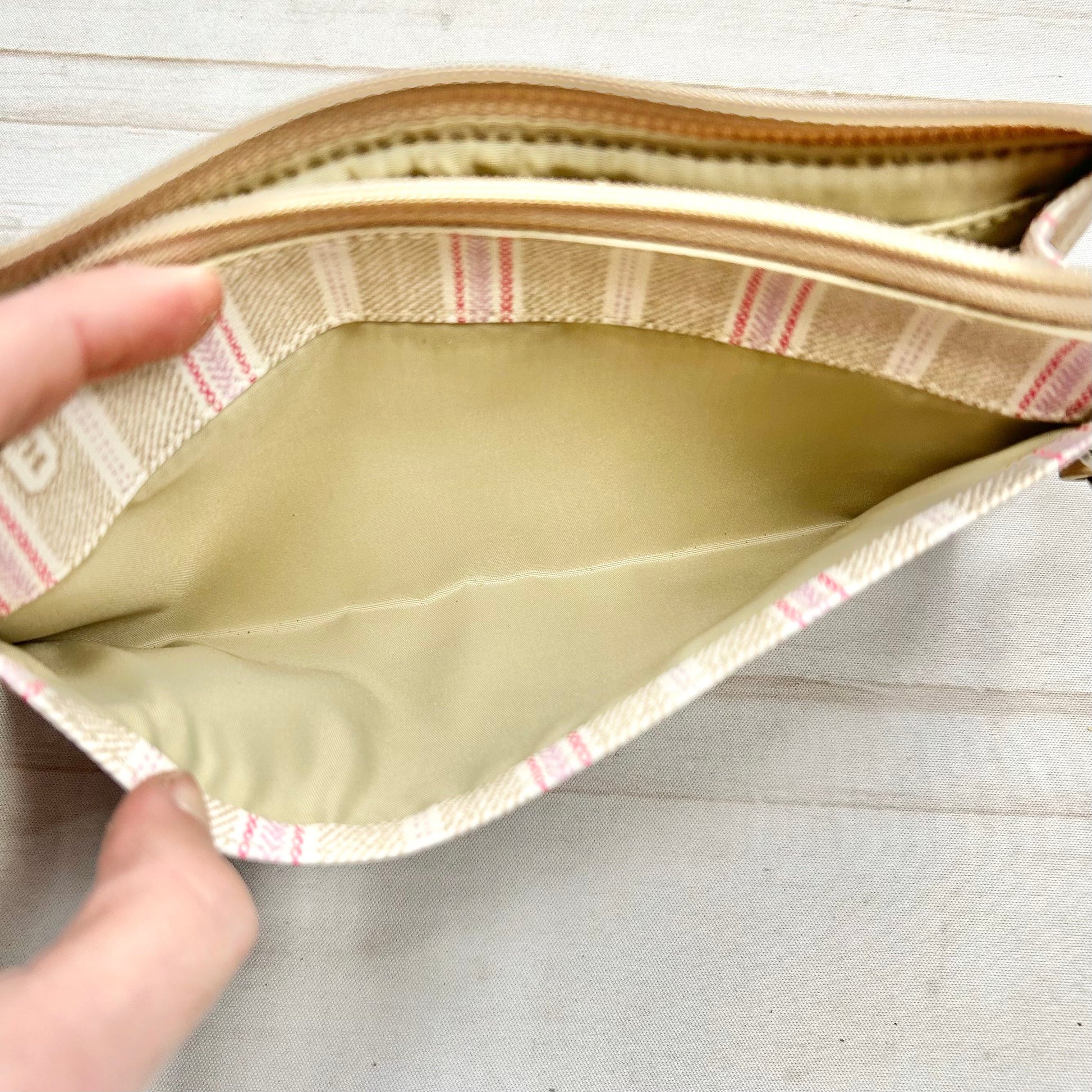 Indulge in the opulent allure of this medium-sized Coach wristlet designer showcasing exquisite craftsmanship and luxurious detailing for a sophisticated statement.